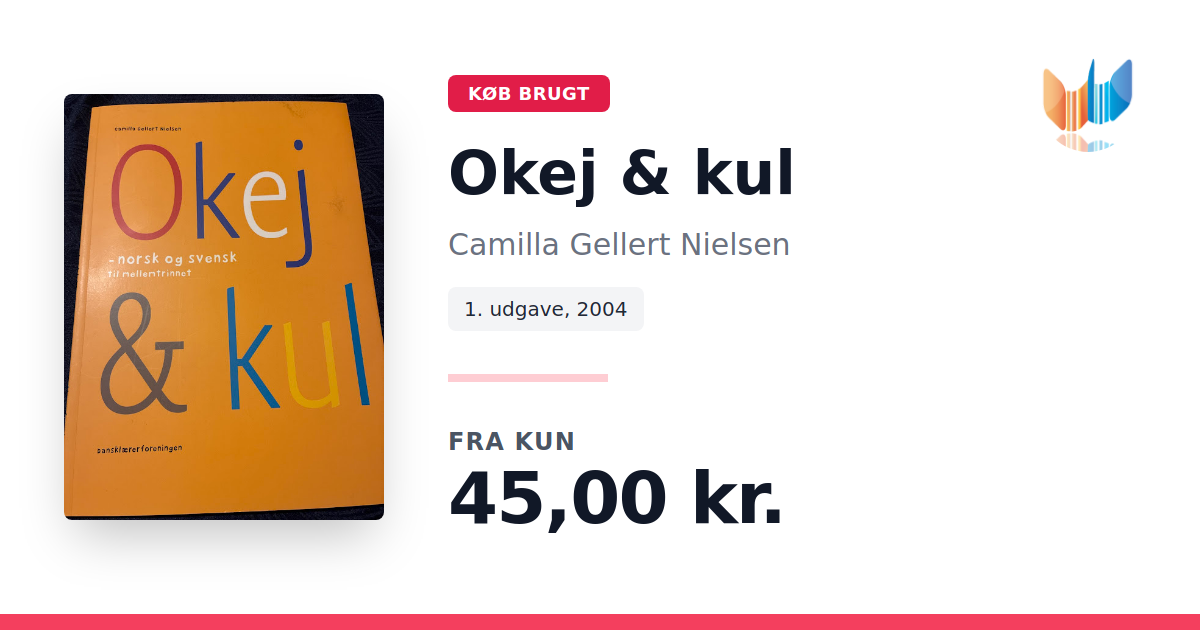 Lige nu kan du købe "Okej & kul" af Camilla Gellert Nielsen til kun 45,00 kr. Bogen du ser her er brugt, og i god stand. Vi har i øjeblikket 2 eksemplarer til salg af "Okej & kul", så husk at se de forskellige udgaver.