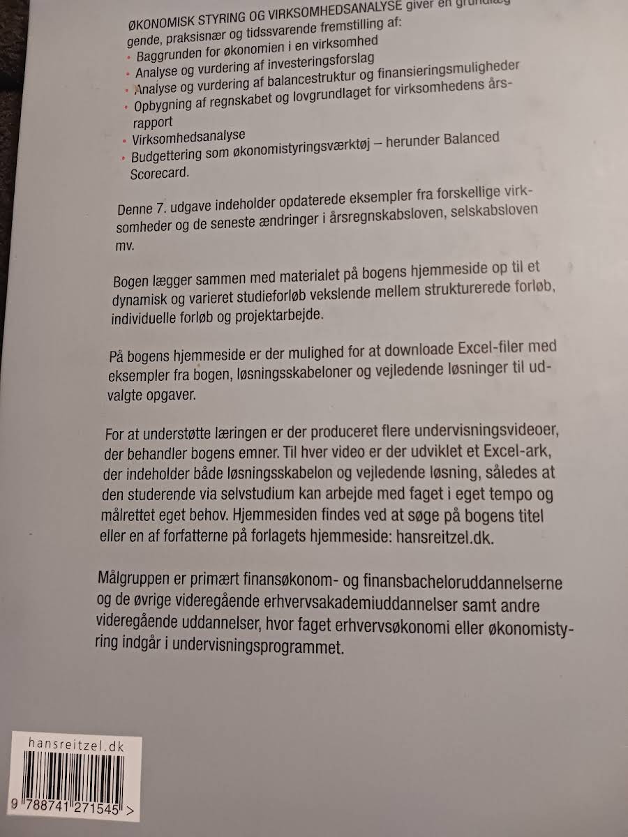 Denne udgave af "Økonomisk styring og virksomhedsanalyse" af Torben Rosenkilde Jensen og Morten Dalbøge tilbyder et grundlæggende og praksisnært indblik i centrale aspekter af økonomistyring og virksomhedsanalyse. Bogen guider læseren gennem indsamling, bearbejdning og forståelse af økonomiske data og understøtter en dybere forståelse af regnskabsudararbejdelse og -analyse. Fokus ligger også på udarbejdelsen og anvendelsen af budgetter samt på analyse og evaluering af investeringsforslag, balancestruktur og finansieringsmuligheder. Udstyrende videregående uddannelser med relevant pædagogisk materiale, rummer bogen et rigt fundament for dem, der ønsker en solid introduktion til områderne økonomistyring, investering og finansiering.