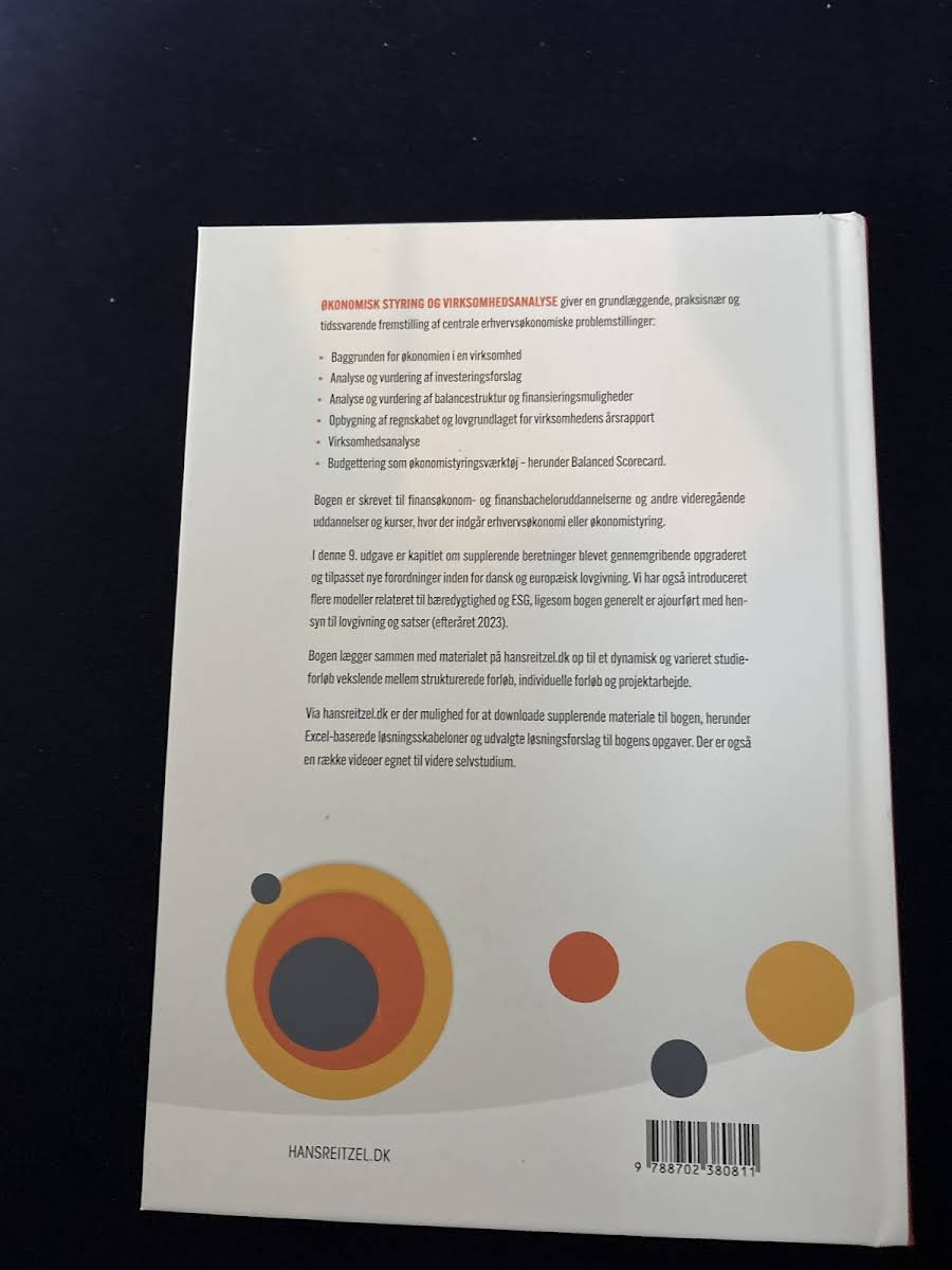 Økonomisk styring og virksomhedsanalyse er en praksisorienteret lærebog, der henvender sig til studerende på finansøkonom- og finansbacheloruddannelsen. Denne 9. udgave er nøje opdateret med de nyeste ændringer i lovgivningen pr. efterår 2023, og de praktiske eksempler i alle kapitler er revideret, så du får et tidssvarende og relevant undervisningsmateriale. Bogen giver en grundig gennemgang af centrale erhvervsøkonomiske problemstillinger – fra baggrunden for virksomhedens økonomi og analyse af investeringsforslag til vurdering af balancestruktur og finansieringsmuligheder. Desuden findes en detaljeret gennemgang af regnskabets opbygning og det tilhørende lovgrundlag for årsrapporten, virksomhedsanalyse samt budgettering som et vigtigt økonomistyringsværktøj, herunder anvendelsen af Balanced Scorecard. Kapitel 10 er særligt udbygget for at imødekomme de nye krav til supplerende beretninger under både dansk og europæisk lovgivning, og indeholder flere nye modeller med fokus på bæredygtighed og ESG. For at støtte din læring er der tilknyttet undervisningsvideoer og praktiske Excel-ark med løsningsforslag, som giver mulighed for at arbejde målrettet og i dit eget tempo med stoffet.