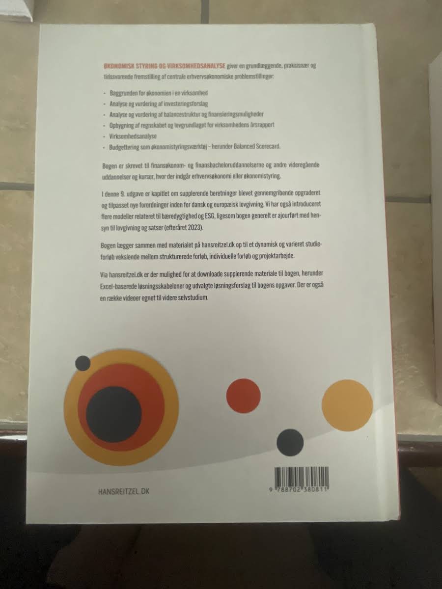 Økonomisk styring og virksomhedsanalyse er en praksisorienteret lærebog, der henvender sig til studerende på finansøkonom- og finansbacheloruddannelsen. Denne 9. udgave er nøje opdateret med de nyeste ændringer i lovgivningen pr. efterår 2023, og de praktiske eksempler i alle kapitler er revideret, så du får et tidssvarende og relevant undervisningsmateriale. Bogen giver en grundig gennemgang af centrale erhvervsøkonomiske problemstillinger – fra baggrunden for virksomhedens økonomi og analyse af investeringsforslag til vurdering af balancestruktur og finansieringsmuligheder. Desuden findes en detaljeret gennemgang af regnskabets opbygning og det tilhørende lovgrundlag for årsrapporten, virksomhedsanalyse samt budgettering som et vigtigt økonomistyringsværktøj, herunder anvendelsen af Balanced Scorecard. Kapitel 10 er særligt udbygget for at imødekomme de nye krav til supplerende beretninger under både dansk og europæisk lovgivning, og indeholder flere nye modeller med fokus på bæredygtighed og ESG. For at støtte din læring er der tilknyttet undervisningsvideoer og praktiske Excel-ark med løsningsforslag, som giver mulighed for at arbejde målrettet og i dit eget tempo med stoffet.