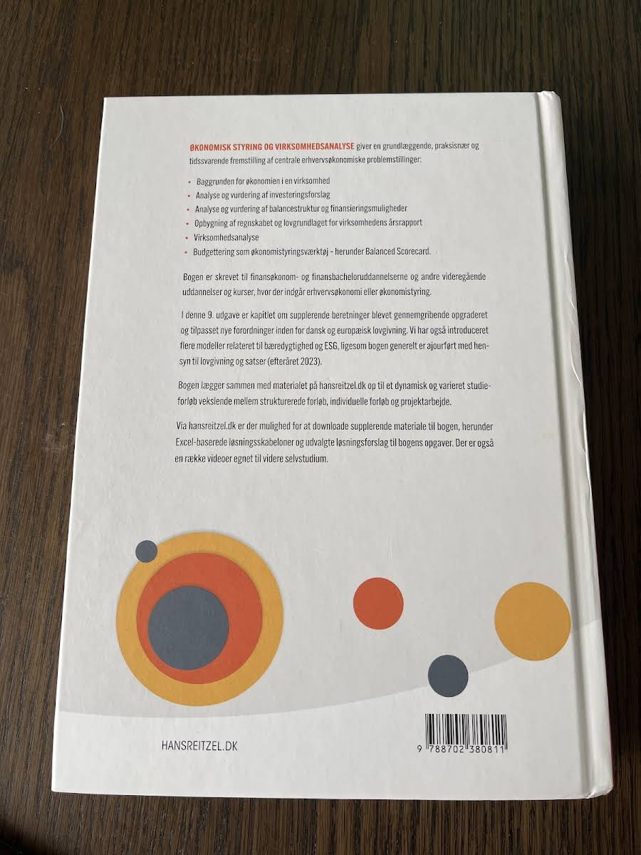 Økonomisk styring og virksomhedsanalyse er en praksisorienteret lærebog, der henvender sig til studerende på finansøkonom- og finansbacheloruddannelsen. Denne 9. udgave er nøje opdateret med de nyeste ændringer i lovgivningen pr. efterår 2023, og de praktiske eksempler i alle kapitler er revideret, så du får et tidssvarende og relevant undervisningsmateriale. Bogen giver en grundig gennemgang af centrale erhvervsøkonomiske problemstillinger – fra baggrunden for virksomhedens økonomi og analyse af investeringsforslag til vurdering af balancestruktur og finansieringsmuligheder. Desuden findes en detaljeret gennemgang af regnskabets opbygning og det tilhørende lovgrundlag for årsrapporten, virksomhedsanalyse samt budgettering som et vigtigt økonomistyringsværktøj, herunder anvendelsen af Balanced Scorecard. Kapitel 10 er særligt udbygget for at imødekomme de nye krav til supplerende beretninger under både dansk og europæisk lovgivning, og indeholder flere nye modeller med fokus på bæredygtighed og ESG. For at støtte din læring er der tilknyttet undervisningsvideoer og praktiske Excel-ark med løsningsforslag, som giver mulighed for at arbejde målrettet og i dit eget tempo med stoffet.