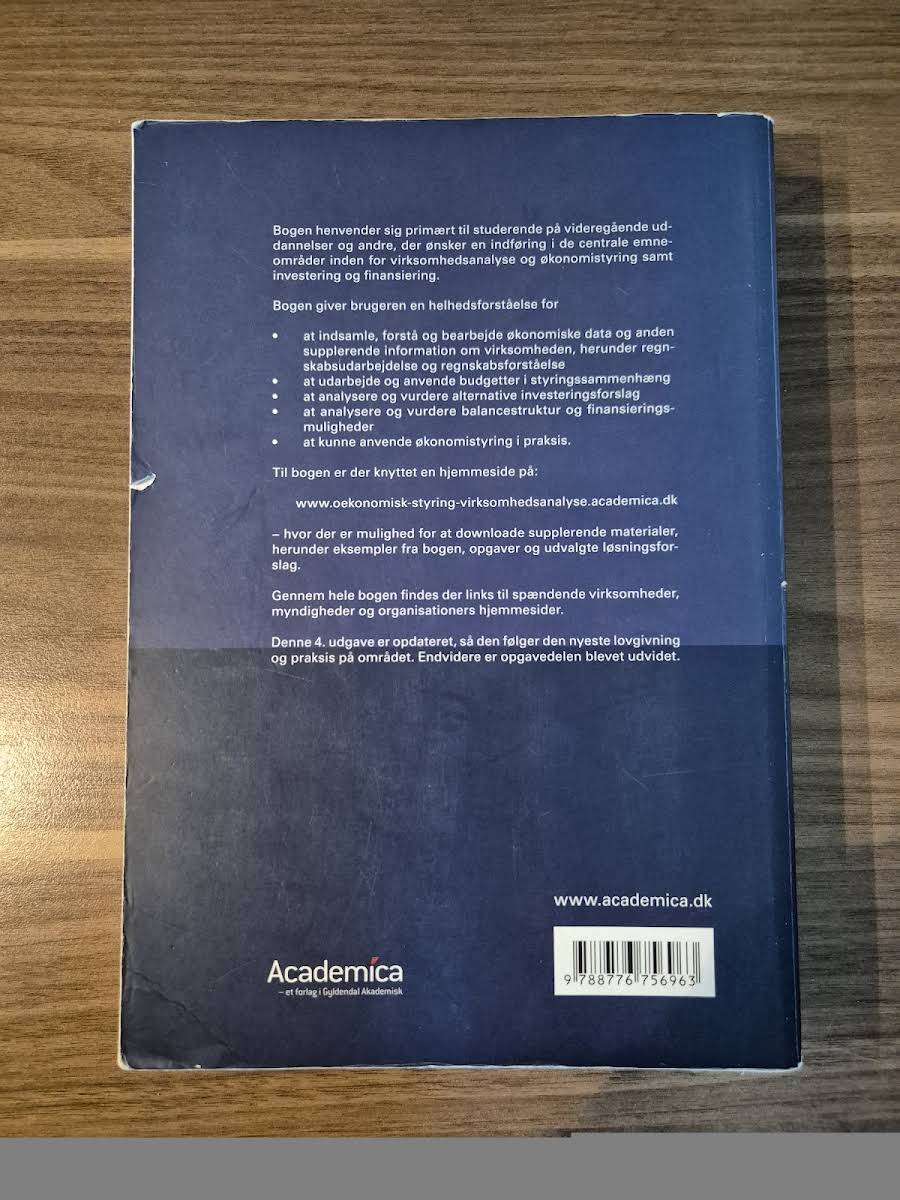 Bogen "Økonomisk styring og virksomhedsanalyse" giver et grundlæggende og praksisnært indblik i indsamling, bearbejdelse og fortolkning af økonomiske data samt regnskabsudarbejdelse og -forståelse. Gennem en systematisk tilgang til udarbejdelse og anvendelse af budgetter, analyser af investeringsforslag og vurdering af balancestruktur og finansieringsmuligheder, præsenteres centrale værktøjer til økonomistyring. Med en klar og anvendelsesorienteret fremstilling er bogen rettet mod studerende på videregående uddannelser på KVU-niveau samt alle, der ønsker en dybdegående introduktion til virksomhedsanalyse og økonomistyring. Den fjerde udgave fra Hans Reitzel, udgivet i 2009, understreger vigtigheden af at omsætte teoretisk viden til praksis i en kompleks erhvervskontekst.
