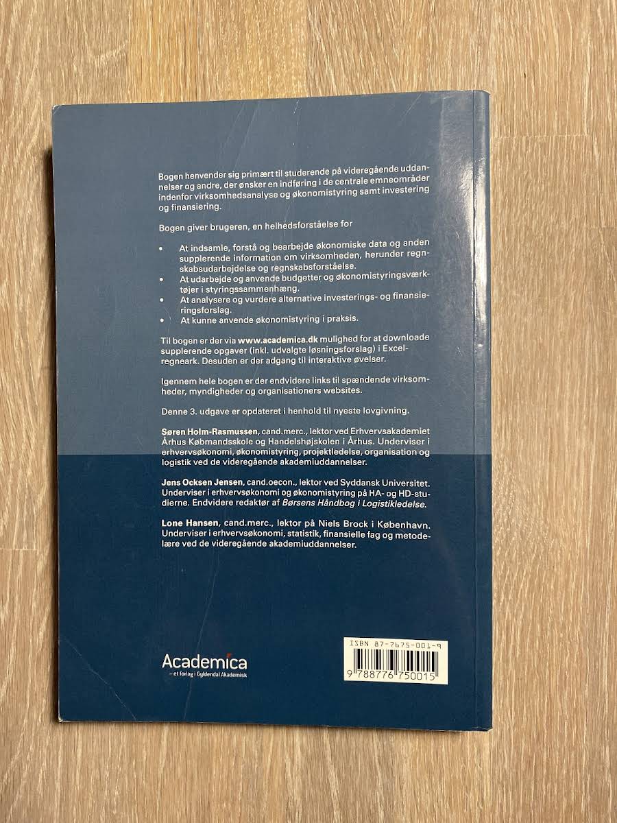 Bogen er primært tiltænkt studerende på korte videregående uddannelser samt alle, der ønsker en grundig indføring i de centrale aspekter af økonomistyring, virksomhedsanalyse samt investering og finansiering. Den giver en helhedsforståelse for, hvordan man indsamler, fortolker og bearbejder økonomiske data og supplerende virksomhedsoplysninger, herunder regnskabsudarbejdelse og regnskabsforståelse. Desuden belyser bogen anvendelsen af budgetter og andre økonomistyringsværktøjer i praksis, samt hvordan man kan analysere og vurdere forskellige investerings- og finansieringsforslag. Med sin tredje udgave fra 2006 og et indhold på 470 sider præsenterer bogen et solidt fundament for videregående studier og praktisk anvendelse inden for området.