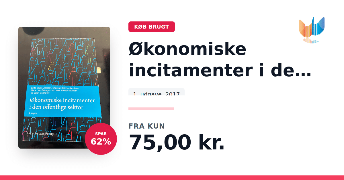 I "Økonomiske incitamenter i den offentlige sektor" foretager Thomas Pallesen, Lotte Bøgh Andersen, Søren Serritzlew, Mads Leth Felsager Jakobsen og Christian Bøtcher Jacobsen en kritisk undersøgelse af, hvordan økonomiske incitamenter anvendes som styringsredskab i den offentlige sektor. Bogen analyserer, om og i hvilket omfang disse incitamenter påvirker adfærden hos offentligt ansatte og myndigheder – fra de tilfælde, hvor de ønskede resultater opnås, til situationer hvor incitamenterne enten er ineffektive eller modvirker intentionerne. Med en grundig gennemgang af incitamenternes design og målretning giver forfatterne et nuanceret billede af, hvordan virkningen afhænger af, om belønninger og sanktioner rettes mod individuelle medarbejdere eller hele organisationen. Bogen fremhæver desuden betydningen af, at incitamenterne er troværdige og afstemt med de normer og værdier, der præger de faggrupper, de er tiltænkt. Denne velskrevne og analytiske fremstilling giver læseren indsigt i de komplekse dynamikker, der ligger bag styringen af den offentlige sektor.