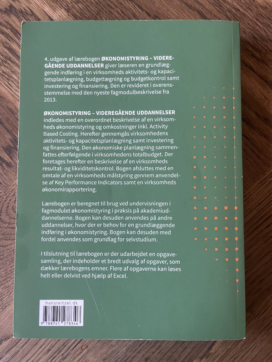 Med den fjerde udgave af Økonomistyring - videregående uddannelser får studerende og undervisere en grundig og ajourført introduktion til en virksomheds økonomiske planlægning og kontrol. Bogen giver en overordnet gennemgang af økonomistyring, hvor aktiviteter som kapacitetsplanlægning, investering, finansiering og udarbejdelse af totalbudgetter sættes i centrum. Herefter uddybes virksomhedens resultat- og likviditetskontrol, og læseren møder en systematisk beskrivelse af målstyring ved hjælp af Key Performance Indicators samt metoder til økonomirapportering. Eksempler i Excel er i denne udgave udbygget, så emnerne understøttes af praktiske øvelser, der illustrerer teorien på en let tilgængelig måde. Bogen er designet til undervisningen ved økonomistyring i videregående uddannelser og henvender sig til dem, der ønsker en solid basisforståelse af de centrale processer inden for virksomhedens økonomi. Med sit klare og illustrative indhold skaber den et godt udgangspunkt for både teoretisk forståelse og praktisk anvendelse.