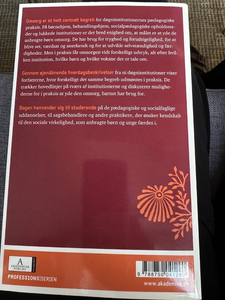 Omsorg for anbragte børn og unge er en grundig undersøgelse af, hvordan omsorgsbegrebet praktiseres i institutioner, hvor børn og unge bor. Bogen giver et nuanceret billede af, hvordan omsorg bliver tilpasset de konkrete rammer og udfordringer i hverdagen på institutioner og belyser, hvordan tryghed og forudsigelighed er afgørende for børnenes udvikling og selvstændighed. Med udgangspunkt i casestudier fra forskellige institutioner bidrager bogen med dybdegående beskrivelser af det pædagogiske arbejde. Værket henvender sig til studerende, sagsbehandlere og praktikere, som ønsker et konkret indblik i den komplekse sociale virkelighed, der karakteriserer livet for anbragte børn og unge.