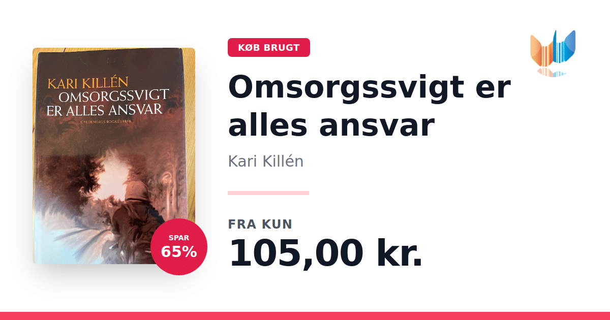 Lige nu kan du købe "Omsorgssvigt er alles ansvar" af Kari Killén til kun 105,00 kr. Du sparer hele 65% af nyprisen! Bogen du ser her er brugt, og i perfekt stand. Vi har i øjeblikket 3 eksemplarer til salg af "Omsorgssvigt er alles ansvar", så husk at se de forskellige udgaver.