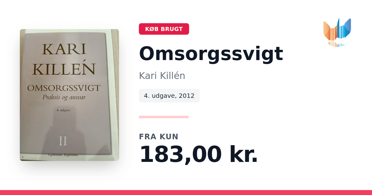 Lige nu kan du købe "Omsorgssvigt" af Kari Killén til kun 183,00 kr. Bogen du ser her er brugt, og i perfekt stand. Vi har i øjeblikket 7 eksemplarer til salg af "Omsorgssvigt", så husk at se de forskellige udgaver.