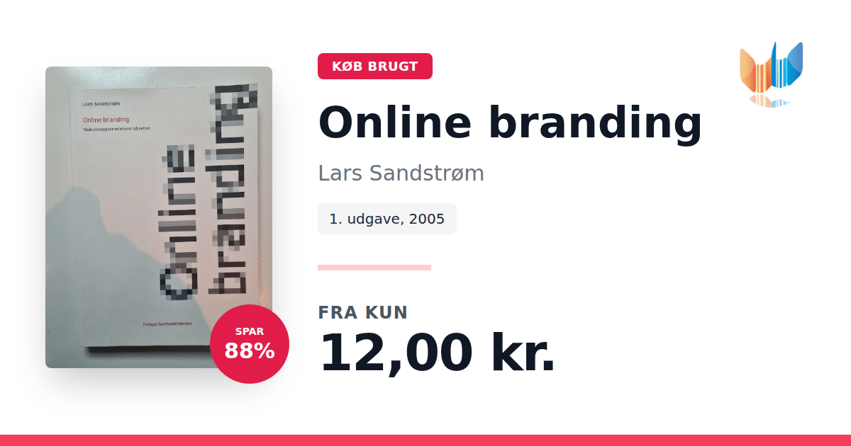 Lige nu kan du købe "Online branding" af Lars Sandstrøm til kun 12,00 kr. Du sparer hele 88% af nyprisen! Bogen du ser her er brugt, og i god stand. Vi har i øjeblikket kun et enkelt eksemplar til salg af "Online branding", så slå til mens du kan!
