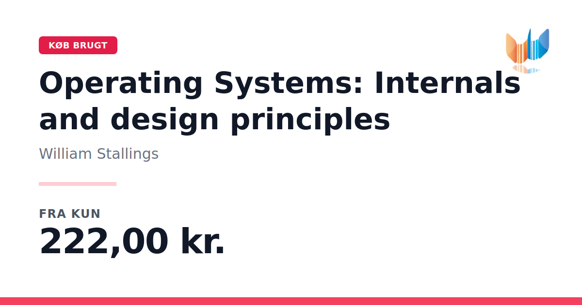 Lige nu kan du købe "Operating Systems: Internals and design principles" af William Stallings til kun 222,00 kr. Du sparer hele 71% af nyprisen! Bogen du ser her er brugt, og i perfekt stand. Vi har i øjeblikket 2 eksemplarer til salg af "Operating Systems: Internals and Design Principles, Global Edition", så husk at se de forskellige udgaver.