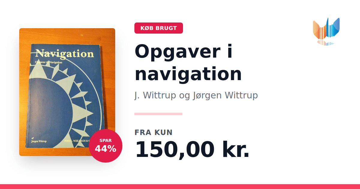 Lige nu kan du købe "Opgaver i navigation" af J. Wittrup og Jørgen Wittrup til kun 150,00 kr. Du sparer hele 44% af nyprisen! Bogen du ser her er brugt, og i perfekt stand. Vi har i øjeblikket kun et enkelt eksemplar til salg af "Opgaver i navigation", så slå til mens du kan!
