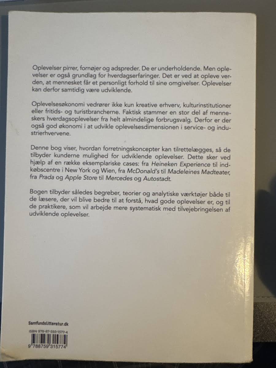 Oplevelsesdesign præsenterer en innovativ tilgang til, hvordan virksomheder kan udvikle kunderejser, der både fordyber og begejstrer. Bogen skitserer, hvordan man med et strategisk fundament kan designe forretningskoncepter, som aktivt skaber udviklende og mindeværdige kundeoplevelser. Med en række illustrative cases fra kendte aktører som McDonald’s, Apple Store, Mercedes og flere, byder Oplevelsesdesign på teorier, begreber og værktøjer, der både belyser, hvad gode oplevelser indebærer, og hvordan de implementeres i praksis. Bogen giver dermed både fagfolk og virksomhedsledere en værdifuld guide til at navigere i den moderne oplevelsesøkonomi.
