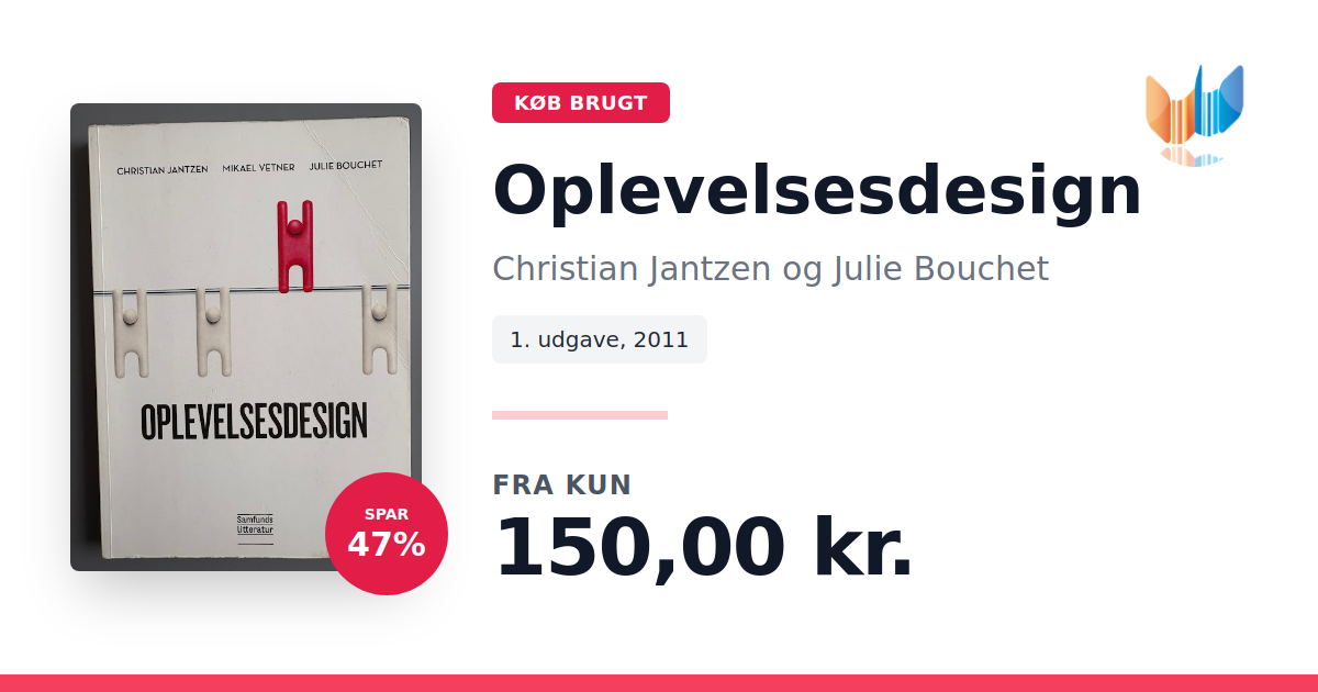 Lige nu kan du købe "Oplevelsesdesign" af Christian Jantzen og Julie Bouchet til kun 150,00 kr. Du sparer hele 47% af nyprisen! Bogen du ser her er brugt, og i god stand. Vi har i øjeblikket kun et enkelt eksemplar til salg af "Oplevelsesdesign", så slå til mens du kan!
