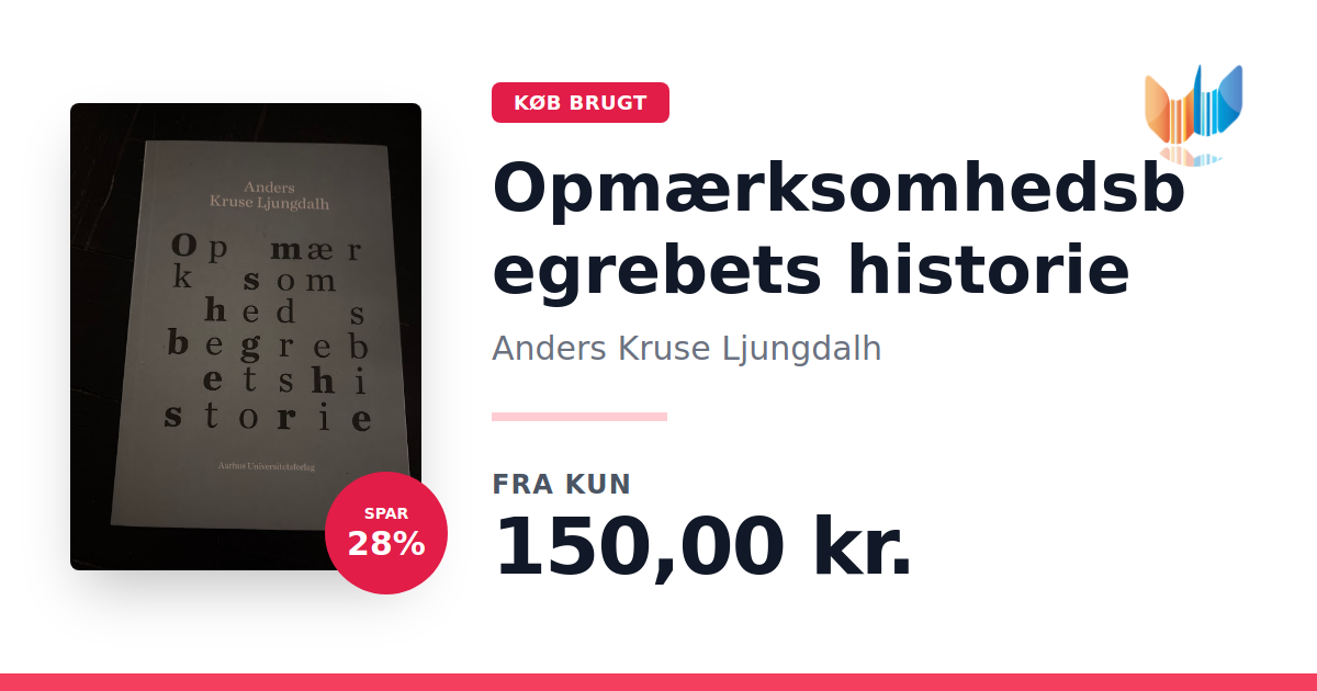 Lige nu kan du købe "Opmærksomhedsbegrebets historie" af Anders Kruse Ljungdalh til kun 150,00 kr. Du sparer hele 28% af nyprisen! Bogen du ser her er brugt, og i perfekt stand. Vi har i øjeblikket kun et enkelt eksemplar til salg af "Opmærksomhedsbegrebets historie", så slå til mens du kan!