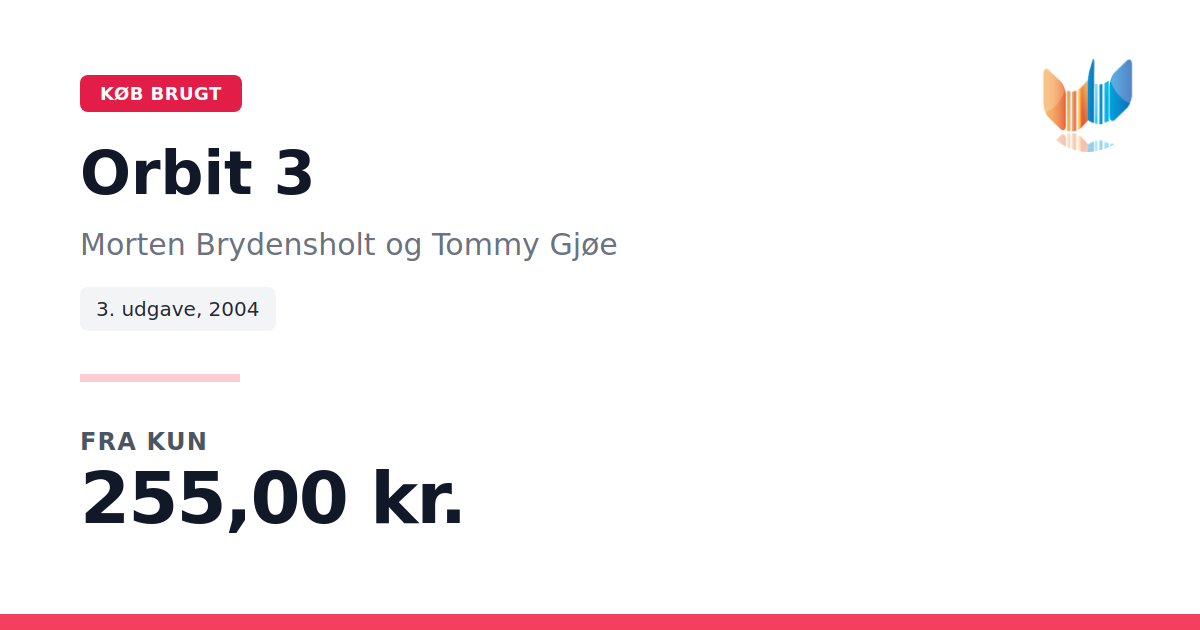 Lige nu kan du købe "Orbit 3" af Morten Brydensholt og Tommy Gjøe til kun 255,00 kr. Du sparer hele 57% af nyprisen! Bogen du ser her er brugt, og i slidt stand. Vi har i øjeblikket kun et enkelt eksemplar til salg af "Orbit", så slå til mens du kan!
