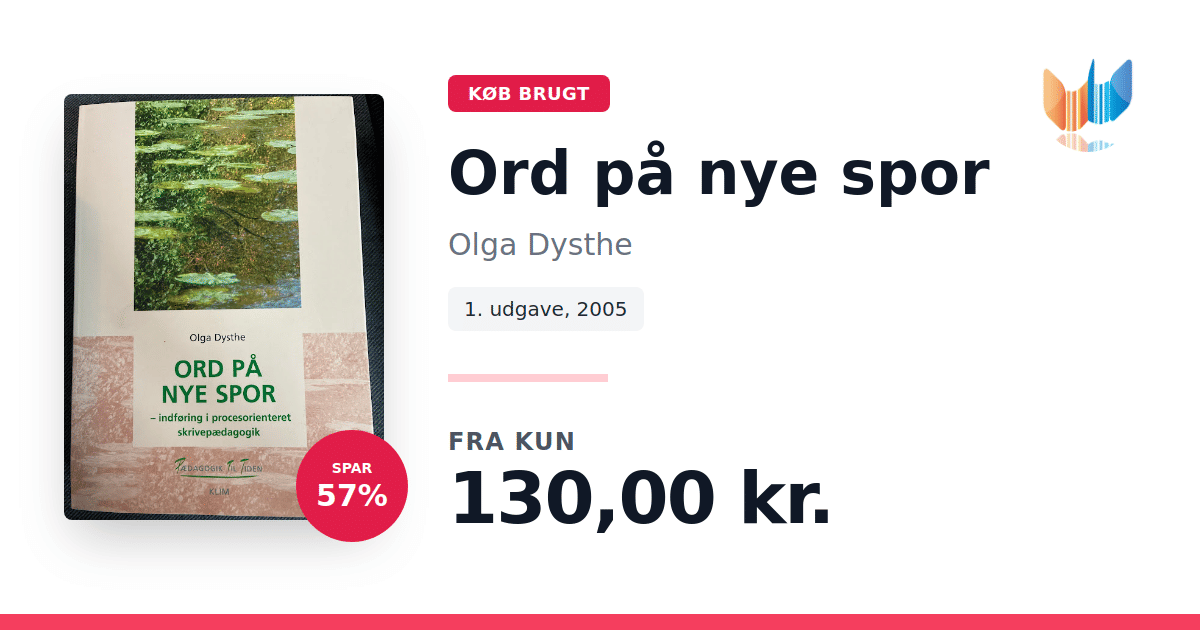 Lige nu kan du købe "Ord på nye spor" af Olga Dysthe til kun 130,00 kr. Du sparer hele 57% af nyprisen! Bogen du ser her er brugt, og i god stand. Vi har i øjeblikket 2 eksemplarer til salg af "Ord på nye spor", så husk at se de forskellige udgaver.