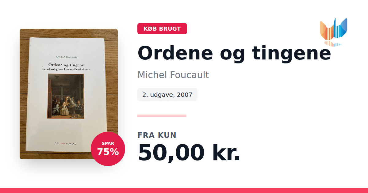 Lige nu kan du købe "Ordene og tingene" af Michel Foucault til kun 50,00 kr. Du sparer hele 75% af nyprisen! Bogen du ser her er brugt, og i perfekt stand. Vi har i øjeblikket kun et enkelt eksemplar til salg af "Ordene og tingene", så slå til mens du kan!
