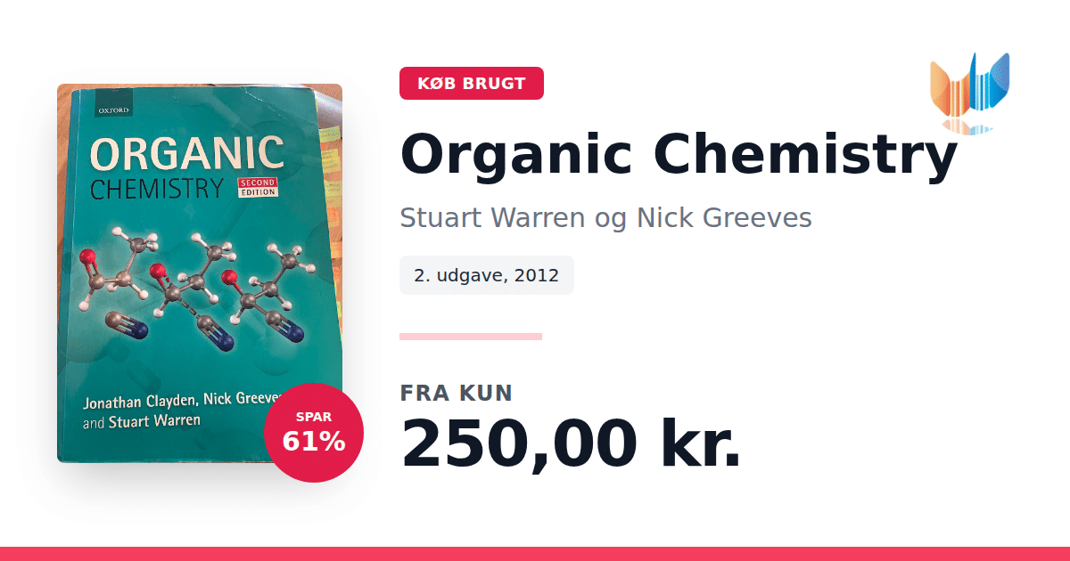 Lige nu kan du købe "Organic Chemistry" af Stuart Warren og Nick Greeves til kun 250,00 kr. Du sparer hele 61% af nyprisen! Bogen du ser her er brugt, og i god stand. Vi har i øjeblikket kun et enkelt eksemplar til salg af "Organic Chemistry", så slå til mens du kan!