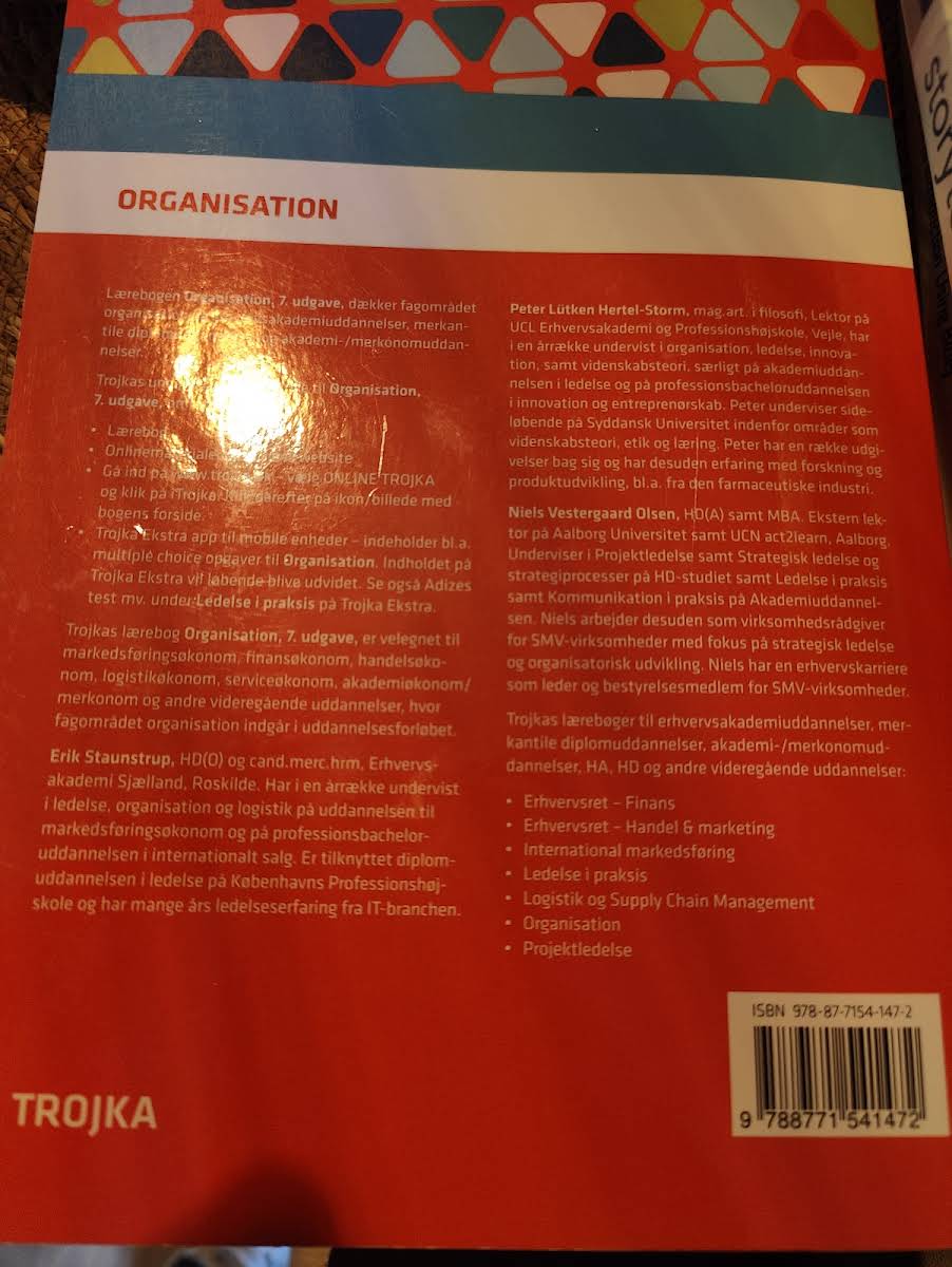 Organisation, 7. udgave, er en gennemarbejdet lærebog, der har markeret sig som en favorit på mange videregående uddannelser. Bogen imponerer med sin kombination af høj faglighed og en rigelig brug af illustrationer og figurer, som gør det nemt at få et overblik over de centrale teorier og modeller inden for organisationsfaget. I denne udgave er indholdet skærpet og fokus er lagt på de teoretiske kerneelementer, mens der er gjort plads til supplering med online materialer og andre undervisningsressourcer. Lærebogen formår at balancere mellem de klassiske organisatoriske tilgange og de nyeste tendenser, herunder inddragelsen af distance- og distribueret arbejde som svar på de moderne arbejdsformer. Yderligere er teamorganisering blevet uddybet med særligt fokus på fordele, udfordringer og betydningen af social kapital i forhold til teamdynamikker. Desuden præsenteres nye perspektiver på fremtidens organisationsformer med inspirerende metaforer som amøbe, fraktal og fiskenet, der sætter dagsordenen for emner som bæredygtighed og digital kommunikation. Med sin opdaterede tilgang og et reduceret omfang er denne 7. udgave et ideelt redskab til både undervisere og studerende, der ønsker et solidt teoretisk grundlag kombineret med moderne eksempler og digitale ressourcer.
