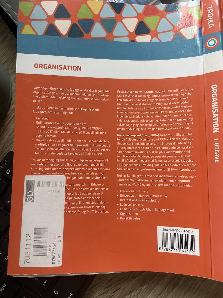 Organisation, 7. udgave, er en gennemarbejdet lærebog, der har markeret sig som en favorit på mange videregående uddannelser. Bogen imponerer med sin kombination af høj faglighed og en rigelig brug af illustrationer og figurer, som gør det nemt at få et overblik over de centrale teorier og modeller inden for organisationsfaget. I denne udgave er indholdet skærpet og fokus er lagt på de teoretiske kerneelementer, mens der er gjort plads til supplering med online materialer og andre undervisningsressourcer. Lærebogen formår at balancere mellem de klassiske organisatoriske tilgange og de nyeste tendenser, herunder inddragelsen af distance- og distribueret arbejde som svar på de moderne arbejdsformer. Yderligere er teamorganisering blevet uddybet med særligt fokus på fordele, udfordringer og betydningen af social kapital i forhold til teamdynamikker. Desuden præsenteres nye perspektiver på fremtidens organisationsformer med inspirerende metaforer som amøbe, fraktal og fiskenet, der sætter dagsordenen for emner som bæredygtighed og digital kommunikation. Med sin opdaterede tilgang og et reduceret omfang er denne 7. udgave et ideelt redskab til både undervisere og studerende, der ønsker et solidt teoretisk grundlag kombineret med moderne eksempler og digitale ressourcer.