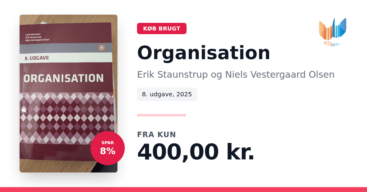 En klassiker inden for organisationsfaget Med en lang tradition på videregående uddannelser, især akademiuddannelser, har Organisation - Lærebog 8. udgave været med til at belyse og forny faget gennem teori, modeller og konkrete eksempler. Denne ottende udgave bygger videre på de tidligere udgaver og er opdateret i overensstemmelse med de krav, der stilles til organisationsfaget i dag. Bogen er opdelt i seks gennemarbejdede dele, hvor hver del favner centrale temaer inden for organisation. Denne struktur skaber et klart overblik og gør det nemt at navigere mellem fagområder som struktur, kultur, ledelse og beslutningsprocesser. Faget organisation er i konstant forandring, og 8. udgave er tilpasset denne udvikling med nye kapitler om AI - generativ kunstig intelligens samt bæredygtighed set i en organisatorisk sammenhæng. Disse temaer afspejler de aktuelle udfordringer og muligheder, organisationer står over for. Der er også tilføjet et længe efterspurgt kapitel om psykisk arbejdsmiljø, og afsnittene om styring og ledelse samt indflydelse og magt er væsentligt udbygget. Målet er at sætte fokus på, hvordan disse faktorer former den daglige drift og strategiske udvikling i organisationer. Beskrivelsen af organisatoriske opbygninger videreudvikler den klassiske organisationsforståelse med et udvidet blik på fleksible organisationsformer og virtuelle organisationer - netop de former, der præger mange virksomheder og institutioner i dag. Med Organisation - Lærebog 8. udgave introduceres også Trojka Universet, et digitalt miljø bestående af en dedikeret website og en mobil app, der supplerer bogens indhold med interaktive øvelser og cases.