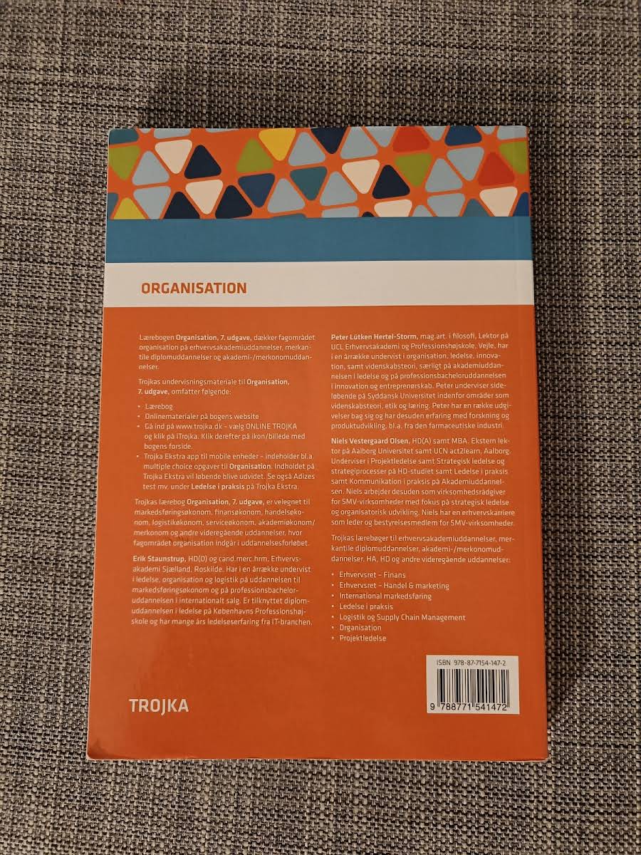 Organisation, 7. udgave, er en gennemarbejdet lærebog, der har markeret sig som en favorit på mange videregående uddannelser. Bogen imponerer med sin kombination af høj faglighed og en rigelig brug af illustrationer og figurer, som gør det nemt at få et overblik over de centrale teorier og modeller inden for organisationsfaget. I denne udgave er indholdet skærpet og fokus er lagt på de teoretiske kerneelementer, mens der er gjort plads til supplering med online materialer og andre undervisningsressourcer. Lærebogen formår at balancere mellem de klassiske organisatoriske tilgange og de nyeste tendenser, herunder inddragelsen af distance- og distribueret arbejde som svar på de moderne arbejdsformer. Yderligere er teamorganisering blevet uddybet med særligt fokus på fordele, udfordringer og betydningen af social kapital i forhold til teamdynamikker. Desuden præsenteres nye perspektiver på fremtidens organisationsformer med inspirerende metaforer som amøbe, fraktal og fiskenet, der sætter dagsordenen for emner som bæredygtighed og digital kommunikation. Med sin opdaterede tilgang og et reduceret omfang er denne 7. udgave et ideelt redskab til både undervisere og studerende, der ønsker et solidt teoretisk grundlag kombineret med moderne eksempler og digitale ressourcer.