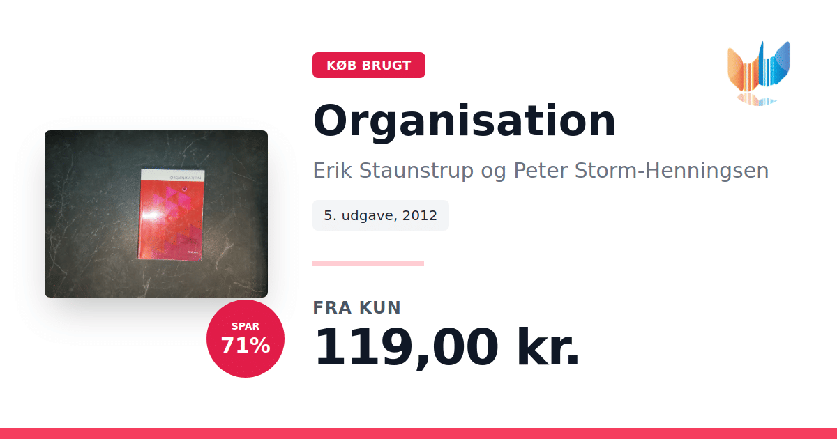 Organisation, 5. udg. (2012) er en omfattende lærebog, der præsenterer et solidt grundlag for forståelsen af organisationsteori og -praksis. Med forfatterne Hans Jørgen Skriver, Erik Staunstrup og Peter Storm-Henningsen har Trojka udviklet et værktøj, der dækker centrale problemstillinger inden for organisation og er særligt tilpasset studier på erhvervsakademiuddannelser, merkantile diplomuddannelser samt akademi- og merkonomuddannelser. Bogen indeholder et rigt udvalg af metodisk tilgang, cases og øvelser, som understøtter den teoretiske diskussion gennem praktisk anvendelse. Organisation er velegnet til studier med fokus på områder som markedsføring, finans, handel, logistik og service, og den giver læseren et solidt fundament til at navigere i komplekse organisatoriske problemstillinger.
