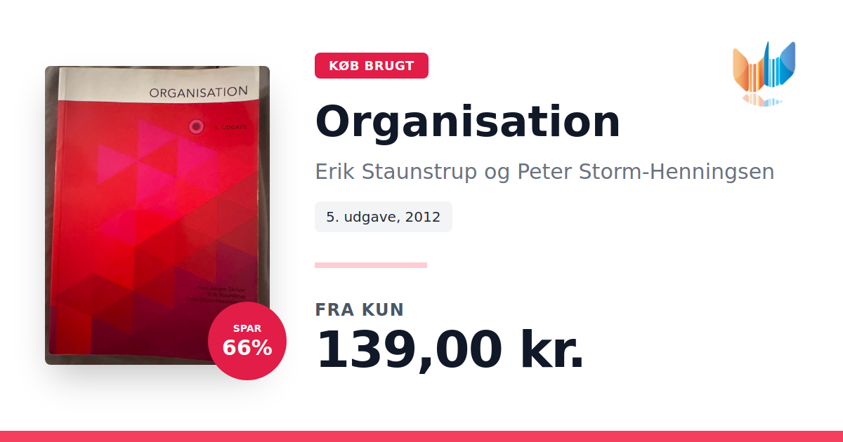 Organisation, 5. udg. (2012) er en omfattende lærebog, der præsenterer et solidt grundlag for forståelsen af organisationsteori og -praksis. Med forfatterne Hans Jørgen Skriver, Erik Staunstrup og Peter Storm-Henningsen har Trojka udviklet et værktøj, der dækker centrale problemstillinger inden for organisation og er særligt tilpasset studier på erhvervsakademiuddannelser, merkantile diplomuddannelser samt akademi- og merkonomuddannelser. Bogen indeholder et rigt udvalg af metodisk tilgang, cases og øvelser, som understøtter den teoretiske diskussion gennem praktisk anvendelse. Organisation er velegnet til studier med fokus på områder som markedsføring, finans, handel, logistik og service, og den giver læseren et solidt fundament til at navigere i komplekse organisatoriske problemstillinger.