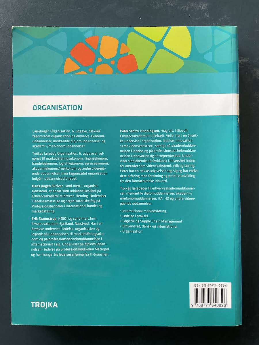 Lærebogen Organisation, 6. udgave, af Hans Jørgen Skriver giver et solidt indblik i organisationens verden. Denne udgave fra Trojka, udgivet i 2017, er udarbejdet med henblik på at understøtte undervisningen på en bred vifte af videregående uddannelser. Bogen er særligt velegnet for studerende på erhvervsakademiuddannelser, merkantile diplomuddannelser samt akademi- og merkonomuddannelser. Med sit dybdegående indhold og relevante eksempler er den et nødvendigt redskab for bl.a. markedsføringsøkonom, finansøkonom, handelsøkonom, logistikøkonom, serviceøkonom og akademiøkonom/merkonom, der ønsker at forstå og udnytte de organisatoriske principper i praksis.