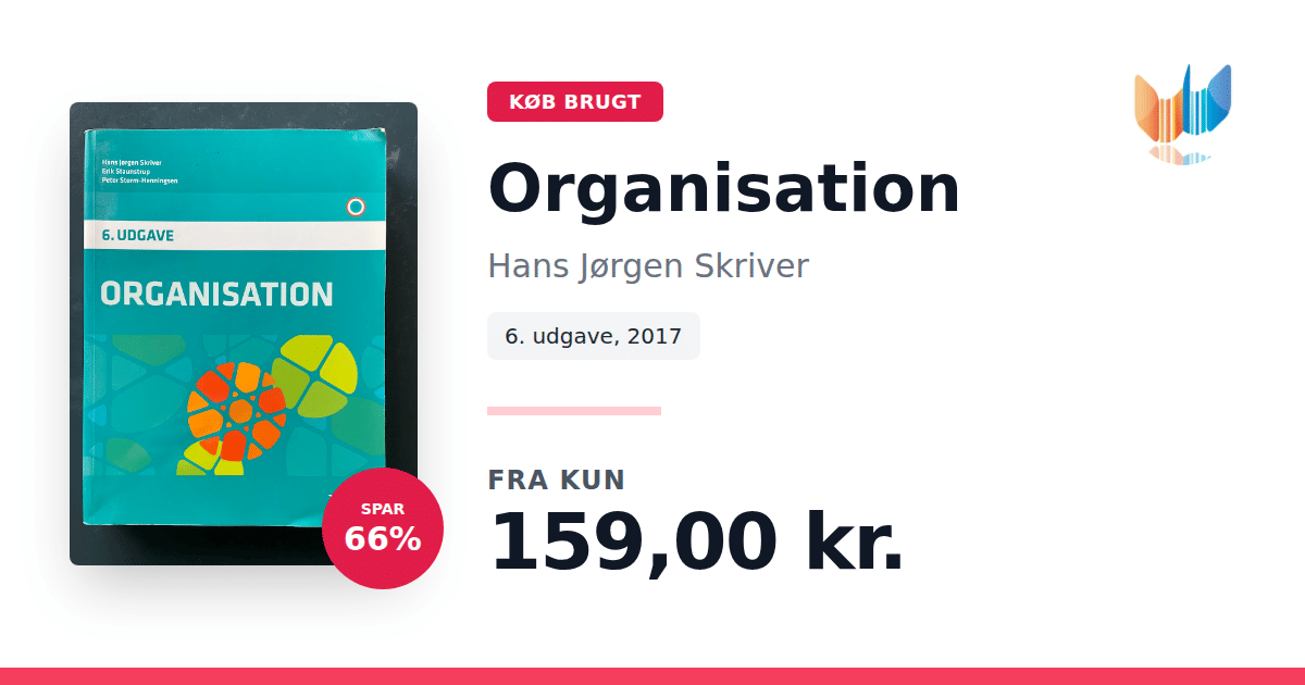 Lige nu kan du købe "Organisation" af Hans Jørgen Skriver til kun 159,00 kr. Du sparer hele 66% af nyprisen! Bogen du ser her er brugt, og i perfekt stand. Vi har i øjeblikket 21 eksemplarer til salg af "Organisation", så husk at se de forskellige udgaver.