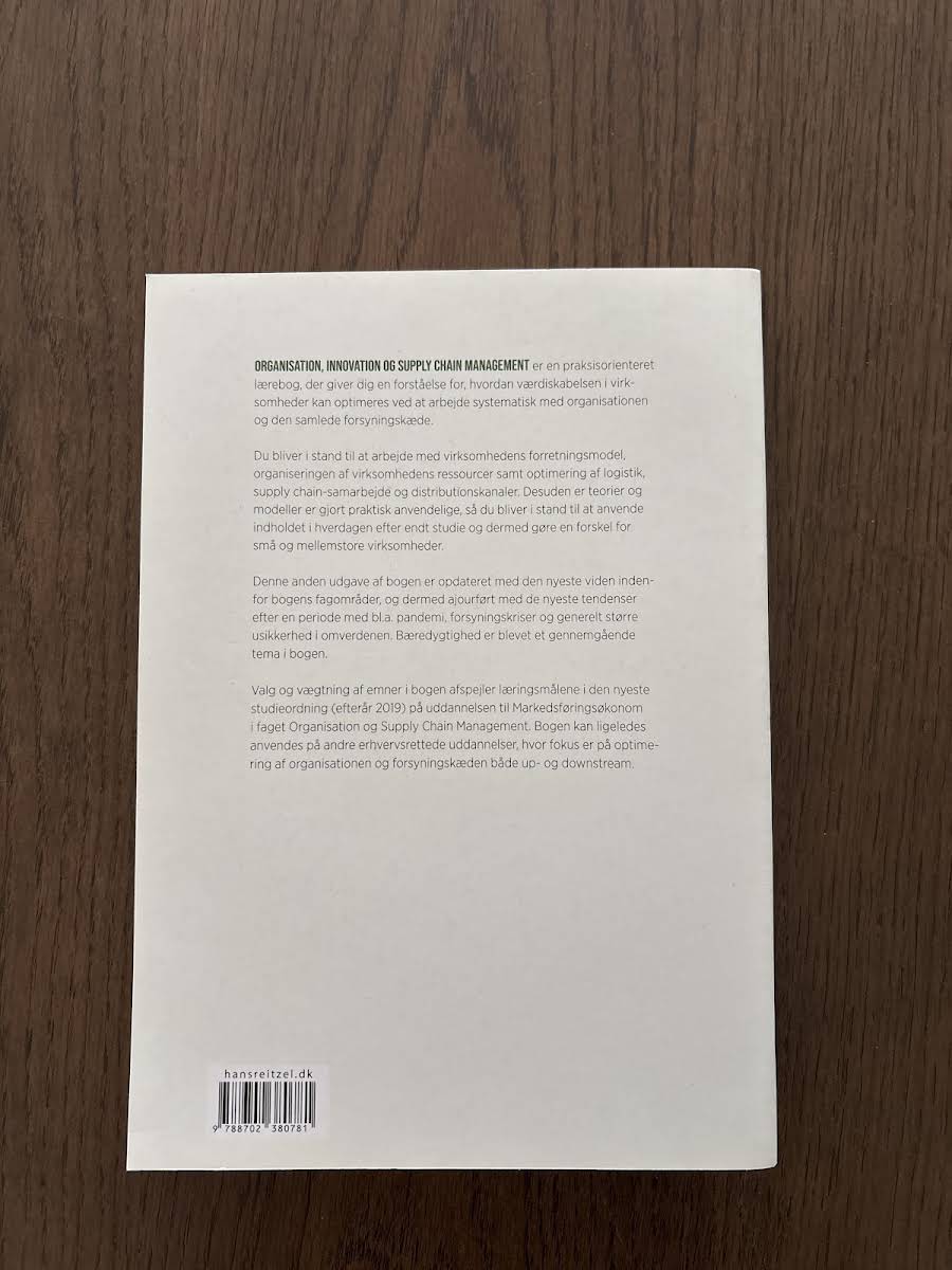 "Organisation, innovation og supply chain management" er en praksisnær lærebog, der giver indblik i, hvordan virksomheder kan øge deres værdiskabelse gennem en systematisk tilgang til både organisationen og forsyningskæden. Bogen guider læseren i arbejdet med forretningsmodellen, ressourceorganisering samt optimering af logistik, samarbejde i supply chain og distributionskanaler. Med et solidt fundament i teorier og modeller, som er gjort praktisk anvendelige, gør bogen det muligt for studerende at omsætte akademisk viden til konkrete løsninger i hverdagen, særligt for små og mellemstore virksomheder. De første kapitler udfordrer læseren til at arbejde innovativt med forretningsmodellen, mens efterfølgende kapitler fokuserer på projektstyring, ledelse, teamsamarbejde og de menneskelige ressourcer i organisationen. Videre dykker bogen ned i, hvordan en struktureret organisation og en stærk virksomhedskultur kan understøtte værdiskabelsen. Der sættes også fokus på det personlige lederskab og vigtigheden af at lede sig selv, inden man kan lede andre. Endvidere behandles centrale aspekter af logistik, samarbejde i forsyningskæden og den strategiske opbygning af distributionskanaler – fra design til den praktiske optimering i den enkelte salgskanal. Skrevet af Dorthe Bohlbro, Thomas Lindholm Uth, Anne Sejer Hansen, Jes Victor Noldus Christiansen og Anne Boeg, og udgivet af Hans Reitzels Forlag i 2023, er denne 480-siders paperback et vigtigt redskab for alle, der ønsker at styrke forståelsen af, hvordan organisation og supply chain management hænger sammen og kan skabe vækst.