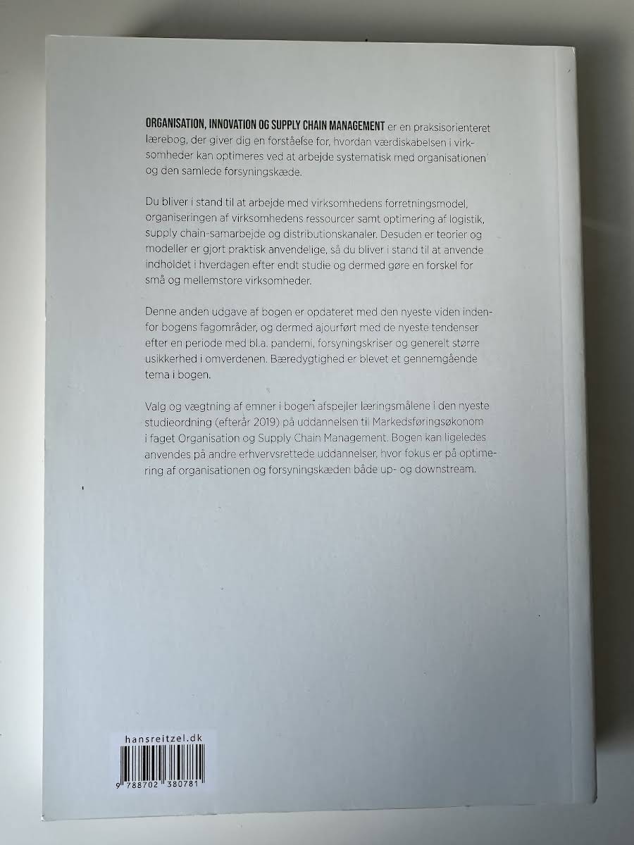 "Organisation, innovation og supply chain management" er en praksisnær lærebog, der giver indblik i, hvordan virksomheder kan øge deres værdiskabelse gennem en systematisk tilgang til både organisationen og forsyningskæden. Bogen guider læseren i arbejdet med forretningsmodellen, ressourceorganisering samt optimering af logistik, samarbejde i supply chain og distributionskanaler. Med et solidt fundament i teorier og modeller, som er gjort praktisk anvendelige, gør bogen det muligt for studerende at omsætte akademisk viden til konkrete løsninger i hverdagen, særligt for små og mellemstore virksomheder. De første kapitler udfordrer læseren til at arbejde innovativt med forretningsmodellen, mens efterfølgende kapitler fokuserer på projektstyring, ledelse, teamsamarbejde og de menneskelige ressourcer i organisationen. Videre dykker bogen ned i, hvordan en struktureret organisation og en stærk virksomhedskultur kan understøtte værdiskabelsen. Der sættes også fokus på det personlige lederskab og vigtigheden af at lede sig selv, inden man kan lede andre. Endvidere behandles centrale aspekter af logistik, samarbejde i forsyningskæden og den strategiske opbygning af distributionskanaler – fra design til den praktiske optimering i den enkelte salgskanal. Skrevet af Dorthe Bohlbro, Thomas Lindholm Uth, Anne Sejer Hansen, Jes Victor Noldus Christiansen og Anne Boeg, og udgivet af Hans Reitzels Forlag i 2023, er denne 480-siders paperback et vigtigt redskab for alle, der ønsker at styrke forståelsen af, hvordan organisation og supply chain management hænger sammen og kan skabe vækst.