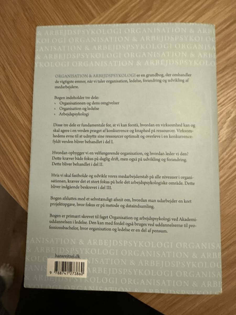 "Organisation og arbejdspsykologi" af Henrik Bendixen Sørensen introducerer læseren til de centrale aspekter af organisation, ledelse, forandring og medarbejderudvikling. Bogen, udgivet af Hans Reitzels Forlag i 2019, er struktureret i tre nøje udvalgte dele, som tilsammen giver et solidt fundament for forståelsen af, hvordan organisationer agerer i en verden præget af konkurrence og begrænsede ressourcer. I den første del sættes fokus på organisationens struktur og dens omgivelser, og hvordan disse elementer spiller sammen for at sikre optimal udnyttelse af ressourcer og virksomhedens langsigtede overlevelse. Den anden del dykker ned i ledelsesstrategier og driftsmæssige udfordringer, hvor balancen mellem daglig drift og nødvendig udvikling vægtes højt. Endelig behandler den tredje del de arbejdspsykologiske aspekter, som er essentielle for at fastholde og udvikle medarbejderne på alle niveauer i organisationen. Bogen indeholder også et praktisk afsnit med fokus på metode og dataindsamling, der guider læseren i udarbejdelsen af projektopgaver. Dette gør "Organisation og arbejdspsykologi" til et værdifuldt værktøj for studerende og professionelle, der ønsker en dybdegående forståelse af feltet.