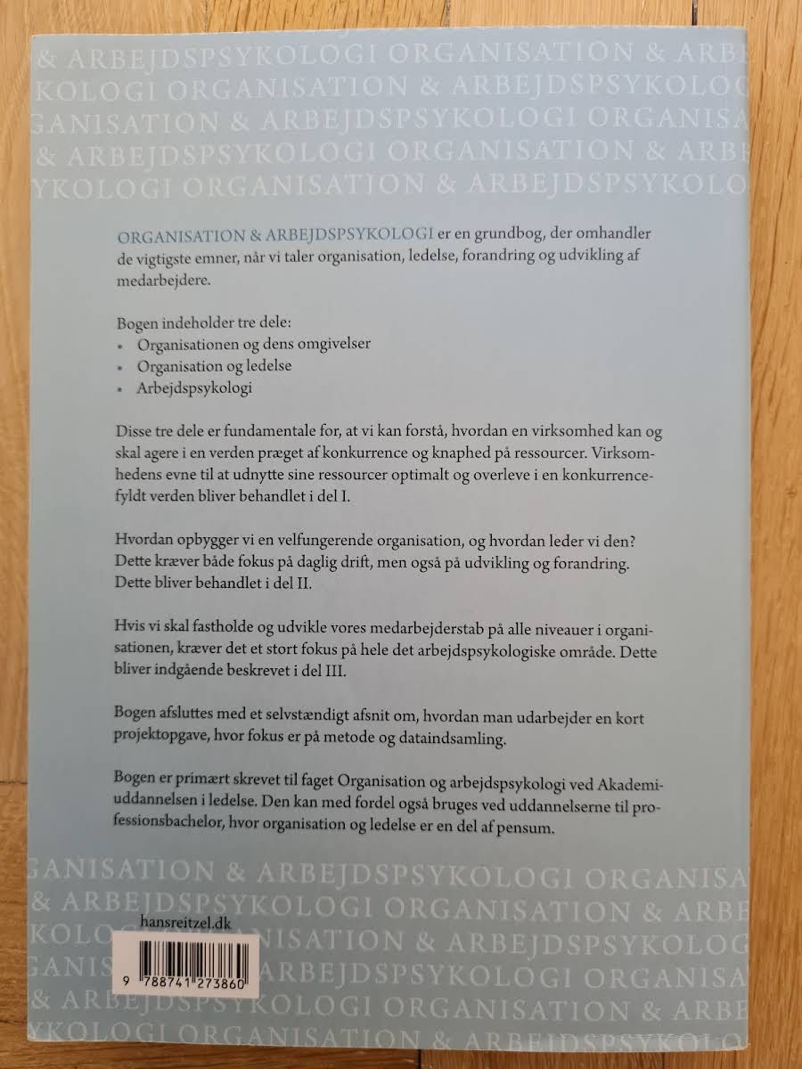 "Organisation og arbejdspsykologi" af Henrik Bendixen Sørensen introducerer læseren til de centrale aspekter af organisation, ledelse, forandring og medarbejderudvikling. Bogen, udgivet af Hans Reitzels Forlag i 2019, er struktureret i tre nøje udvalgte dele, som tilsammen giver et solidt fundament for forståelsen af, hvordan organisationer agerer i en verden præget af konkurrence og begrænsede ressourcer. I den første del sættes fokus på organisationens struktur og dens omgivelser, og hvordan disse elementer spiller sammen for at sikre optimal udnyttelse af ressourcer og virksomhedens langsigtede overlevelse. Den anden del dykker ned i ledelsesstrategier og driftsmæssige udfordringer, hvor balancen mellem daglig drift og nødvendig udvikling vægtes højt. Endelig behandler den tredje del de arbejdspsykologiske aspekter, som er essentielle for at fastholde og udvikle medarbejderne på alle niveauer i organisationen. Bogen indeholder også et praktisk afsnit med fokus på metode og dataindsamling, der guider læseren i udarbejdelsen af projektopgaver. Dette gør "Organisation og arbejdspsykologi" til et værdifuldt værktøj for studerende og professionelle, der ønsker en dybdegående forståelse af feltet.