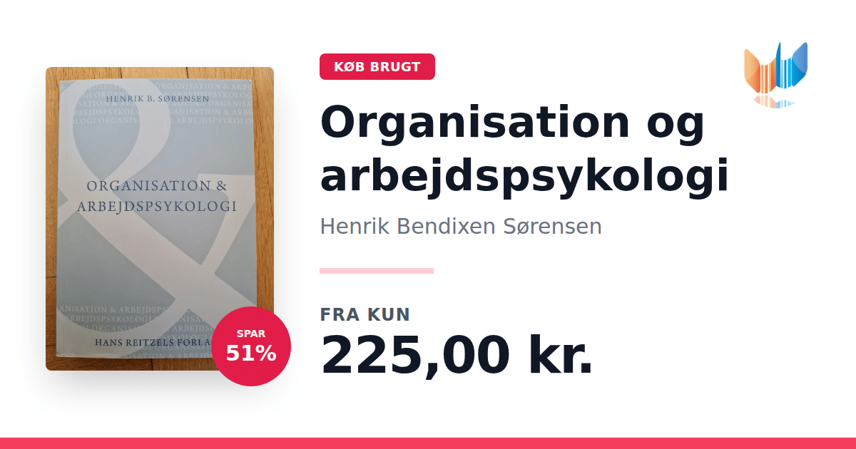 Lige nu kan du købe "Organisation og arbejdspsykologi" af Henrik Bendixen Sørensen til kun 225,00 kr. Du sparer hele 51% af nyprisen! Bogen du ser her er brugt, og i god stand. Vi har i øjeblikket 4 eksemplarer til salg af "Organisation og arbejdspsykologi", så husk at se de forskellige udgaver.