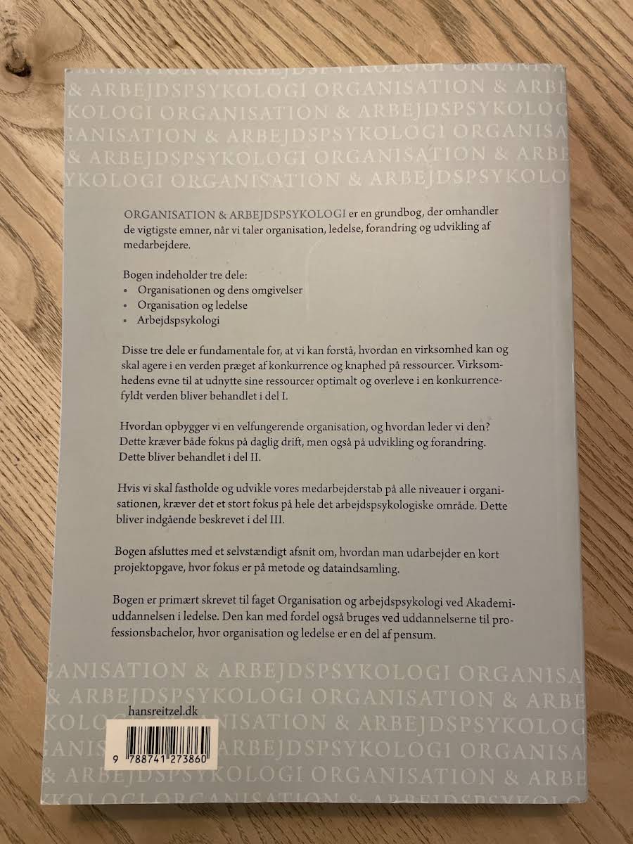 "Organisation og arbejdspsykologi" af Henrik Bendixen Sørensen introducerer læseren til de centrale aspekter af organisation, ledelse, forandring og medarbejderudvikling. Bogen, udgivet af Hans Reitzels Forlag i 2019, er struktureret i tre nøje udvalgte dele, som tilsammen giver et solidt fundament for forståelsen af, hvordan organisationer agerer i en verden præget af konkurrence og begrænsede ressourcer. I den første del sættes fokus på organisationens struktur og dens omgivelser, og hvordan disse elementer spiller sammen for at sikre optimal udnyttelse af ressourcer og virksomhedens langsigtede overlevelse. Den anden del dykker ned i ledelsesstrategier og driftsmæssige udfordringer, hvor balancen mellem daglig drift og nødvendig udvikling vægtes højt. Endelig behandler den tredje del de arbejdspsykologiske aspekter, som er essentielle for at fastholde og udvikle medarbejderne på alle niveauer i organisationen. Bogen indeholder også et praktisk afsnit med fokus på metode og dataindsamling, der guider læseren i udarbejdelsen af projektopgaver. Dette gør "Organisation og arbejdspsykologi" til et værdifuldt værktøj for studerende og professionelle, der ønsker en dybdegående forståelse af feltet.