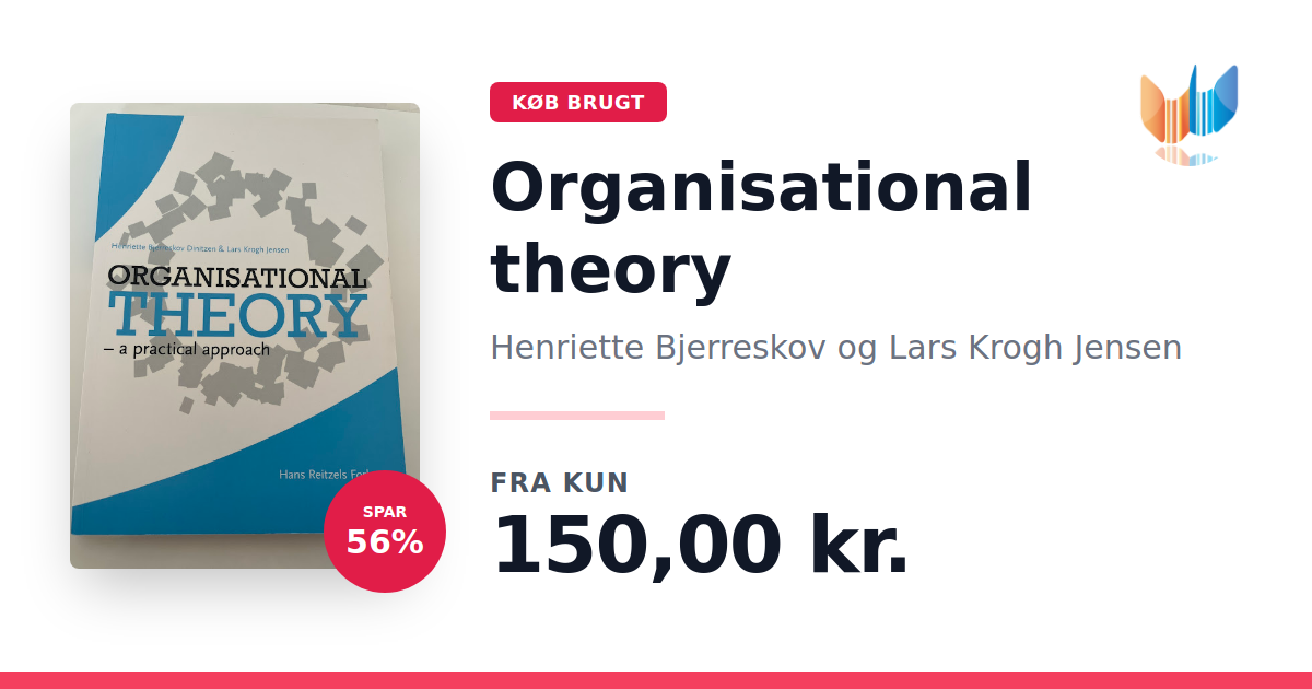 Organisational Theory præsenterer en alsidig introduktion til at forstå og navigere i organisatoriske sammenhænge, uanset om det drejer sig om produktionsvirksomheder, handel eller serviceorganisationer. Bogen omfatter essentielle emner såsom forandringer i det organisatoriske miljø, opbygning af organisationer, teamdynamik, motivation, ledelse, kultur og etik samt innovation, udvikling og strategi. Med en solid teoretisk forankring kombinerer bogen teori og praksis gennem cases, øvelser og eksempler, der giver læseren mulighed for at omsætte læsningen til konkret viden. Organisational Theory henvender sig til videregående uddannelser med fokus på organisation, ledelse og management og giver studerende værktøjerne til aktivt at engagere sig i den organisatoriske virkelighed.