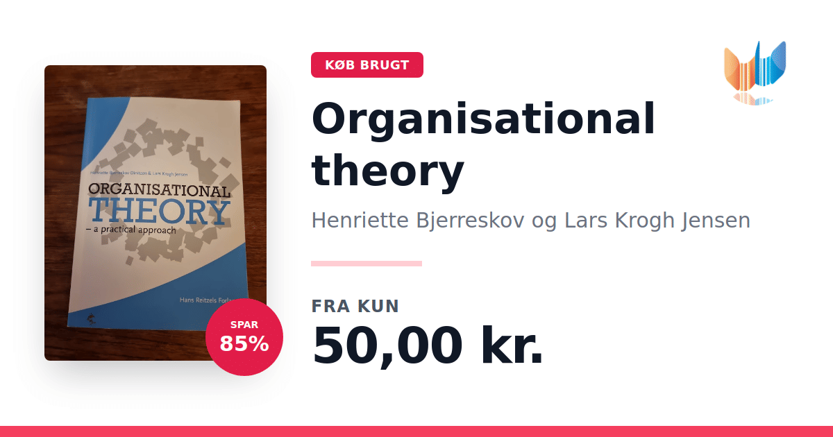 Organisational Theory præsenterer en alsidig introduktion til at forstå og navigere i organisatoriske sammenhænge, uanset om det drejer sig om produktionsvirksomheder, handel eller serviceorganisationer. Bogen omfatter essentielle emner såsom forandringer i det organisatoriske miljø, opbygning af organisationer, teamdynamik, motivation, ledelse, kultur og etik samt innovation, udvikling og strategi. Med en solid teoretisk forankring kombinerer bogen teori og praksis gennem cases, øvelser og eksempler, der giver læseren mulighed for at omsætte læsningen til konkret viden. Organisational Theory henvender sig til videregående uddannelser med fokus på organisation, ledelse og management og giver studerende værktøjerne til aktivt at engagere sig i den organisatoriske virkelighed.