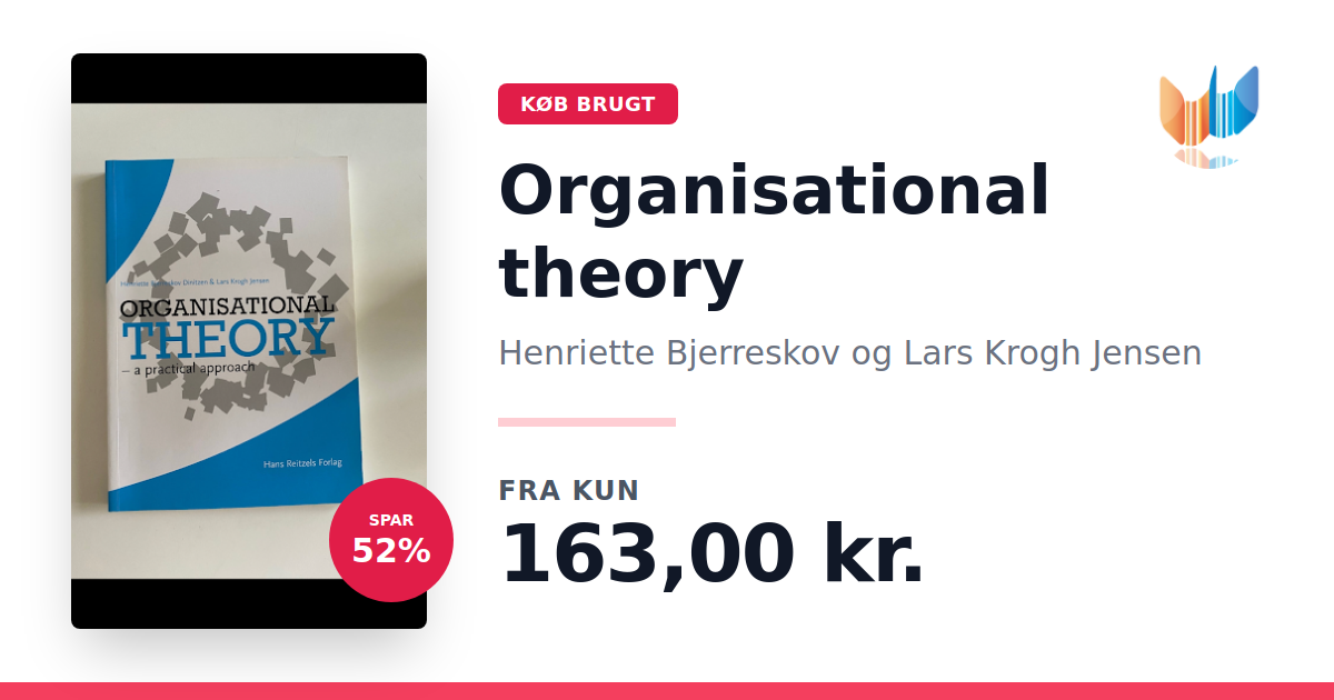 Organisational Theory præsenterer en alsidig introduktion til at forstå og navigere i organisatoriske sammenhænge, uanset om det drejer sig om produktionsvirksomheder, handel eller serviceorganisationer. Bogen omfatter essentielle emner såsom forandringer i det organisatoriske miljø, opbygning af organisationer, teamdynamik, motivation, ledelse, kultur og etik samt innovation, udvikling og strategi. Med en solid teoretisk forankring kombinerer bogen teori og praksis gennem cases, øvelser og eksempler, der giver læseren mulighed for at omsætte læsningen til konkret viden. Organisational Theory henvender sig til videregående uddannelser med fokus på organisation, ledelse og management og giver studerende værktøjerne til aktivt at engagere sig i den organisatoriske virkelighed.