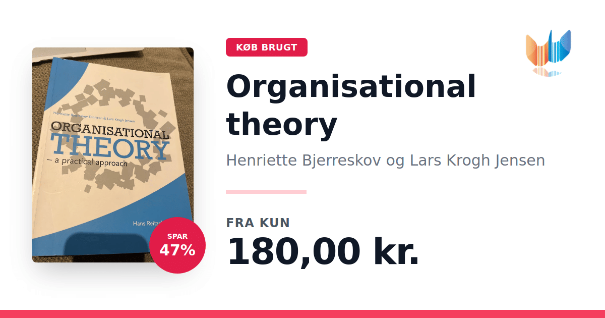 Organisational Theory præsenterer en alsidig introduktion til at forstå og navigere i organisatoriske sammenhænge, uanset om det drejer sig om produktionsvirksomheder, handel eller serviceorganisationer. Bogen omfatter essentielle emner såsom forandringer i det organisatoriske miljø, opbygning af organisationer, teamdynamik, motivation, ledelse, kultur og etik samt innovation, udvikling og strategi. Med en solid teoretisk forankring kombinerer bogen teori og praksis gennem cases, øvelser og eksempler, der giver læseren mulighed for at omsætte læsningen til konkret viden. Organisational Theory henvender sig til videregående uddannelser med fokus på organisation, ledelse og management og giver studerende værktøjerne til aktivt at engagere sig i den organisatoriske virkelighed.