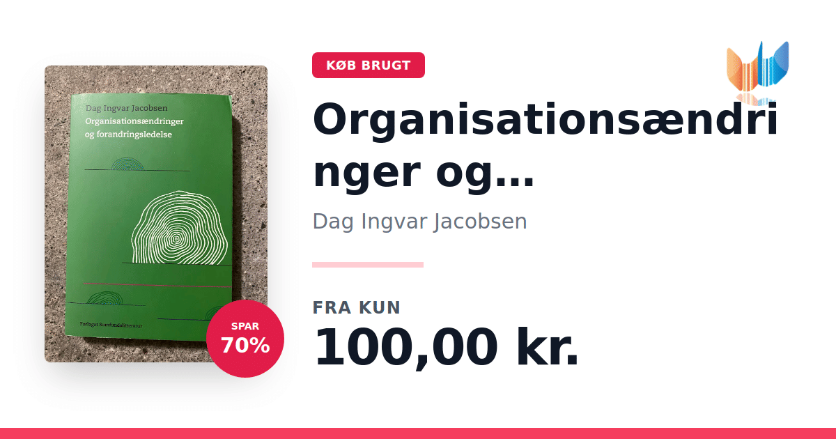Organisationsændringer og forandringsledelse giver et dybt indblik i de mange facetter af forandringsprocesser inden for organisationer. Dag Ingvar Jacobsen præsenterer en bred og tværfaglig tilgang, der udforsker både strategiske valgmuligheder og forskellige ledelsesstile i forhold til at navigere i komplekse forandringsmiljøer. Med en nøje beskrevet analyse af, hvordan man bedst tilpasser ledelsesmetoder til skiftende organisationsbehov, tilbyder bogen et værdifuldt redskab til enhver, der ønsker at forstå, hvordan målrettet forandringsledelse kan omsættes til praksis. Organisationsændringer og forandringsledelse er udgivet af Samfundslitteratur i 2005 og tæller 379 sider fyldt med indsigt og praktisk vejledning.