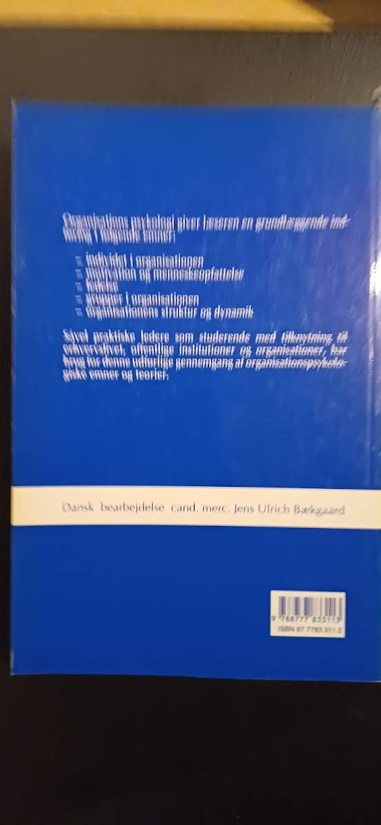 I denne anden udgave af Organisationspsykologi byder Edgar H. Schein på en grundig tilgang til emnet. Udgivet i 2000 hos Systime og præsenteret i en kompakt paperback på 285 sider, giver bogen et solidt grundlag inden for området. Med sit klare sprog og overblik fremstår værket som et centralt bidrag for alle, der ønsker at forstå de psykologiske aspekter i organisatoriske sammenhænge. Organisationspsykologi er et vigtigt redskab for både studerende og praktikere, der vil dykke ned i de principper, som påvirker den organisatoriske adfærd.