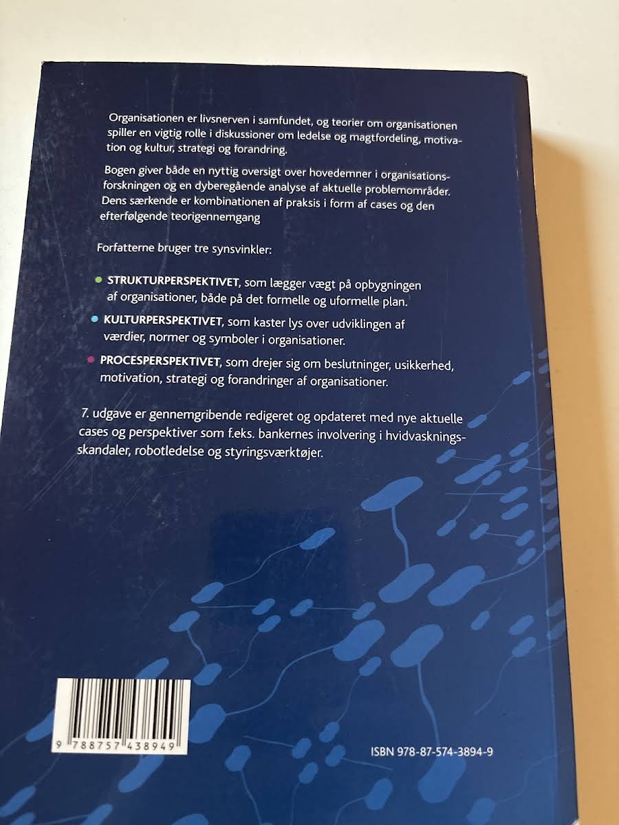 "Organisationsteori" fra 2019 af Egil Fivelsdal og Jørgen Frode Bakka tilbyder en grundig introduktion til centrale emner inden for organisationsforskning. Bogen undersøger, hvordan organisationens struktur, kultur og processer interagerer, og illustrerer teorierne gennem konkrete cases, som sætter fokus på både individet og organisationens samlede opbygning. Med udgangspunkt i cases fra den praktiske verden kombineres teoretiske perspektiver med virkelighedsnære eksempler, der belyser ledelse, strategi og forandringsprocesser. Denne opdaterede udgave giver læseren et solidt fundament for at forstå de dynamiske processer, der spiller en afgørende rolle i nutidens organisationer.