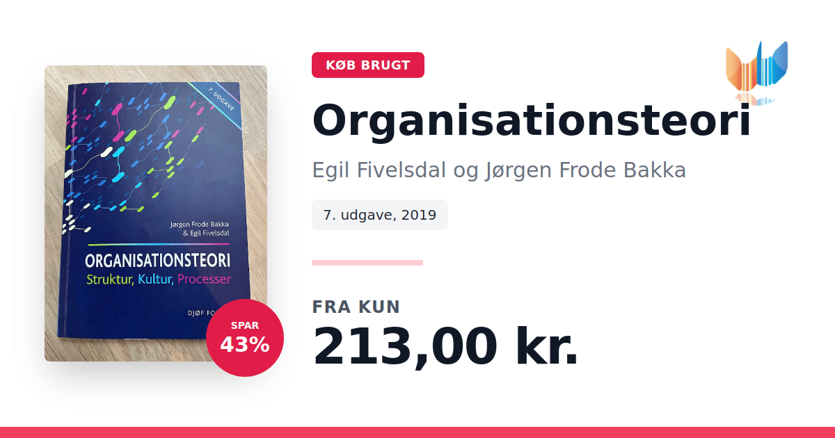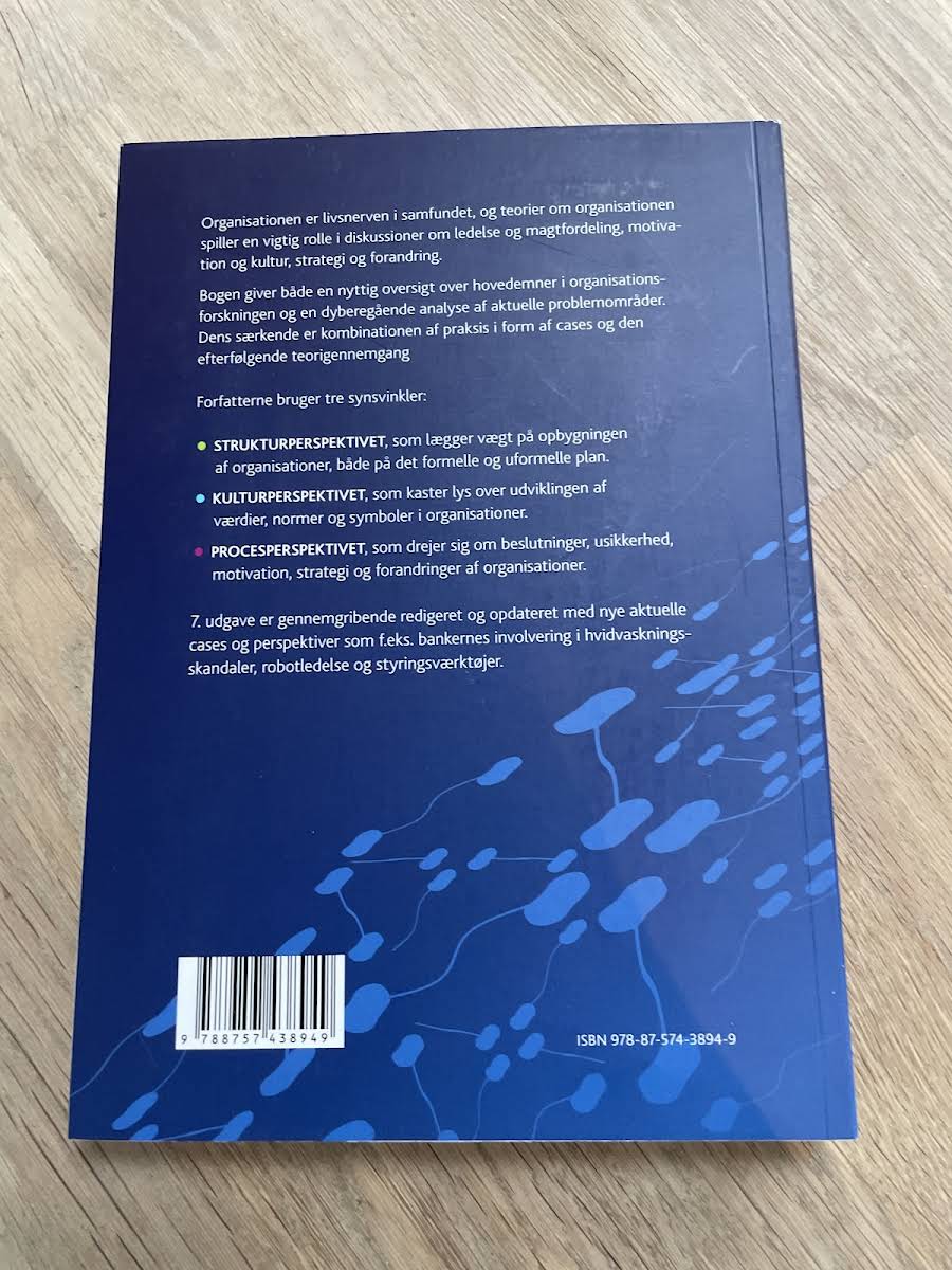 "Organisationsteori" fra 2019 af Egil Fivelsdal og Jørgen Frode Bakka tilbyder en grundig introduktion til centrale emner inden for organisationsforskning. Bogen undersøger, hvordan organisationens struktur, kultur og processer interagerer, og illustrerer teorierne gennem konkrete cases, som sætter fokus på både individet og organisationens samlede opbygning. Med udgangspunkt i cases fra den praktiske verden kombineres teoretiske perspektiver med virkelighedsnære eksempler, der belyser ledelse, strategi og forandringsprocesser. Denne opdaterede udgave giver læseren et solidt fundament for at forstå de dynamiske processer, der spiller en afgørende rolle i nutidens organisationer.