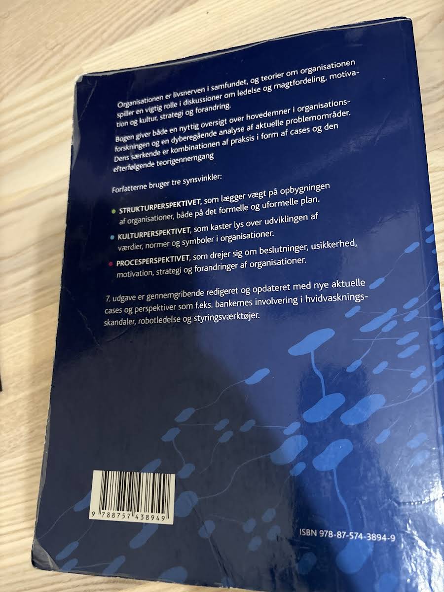 "Organisationsteori" fra 2019 af Egil Fivelsdal og Jørgen Frode Bakka tilbyder en grundig introduktion til centrale emner inden for organisationsforskning. Bogen undersøger, hvordan organisationens struktur, kultur og processer interagerer, og illustrerer teorierne gennem konkrete cases, som sætter fokus på både individet og organisationens samlede opbygning. Med udgangspunkt i cases fra den praktiske verden kombineres teoretiske perspektiver med virkelighedsnære eksempler, der belyser ledelse, strategi og forandringsprocesser. Denne opdaterede udgave giver læseren et solidt fundament for at forstå de dynamiske processer, der spiller en afgørende rolle i nutidens organisationer.