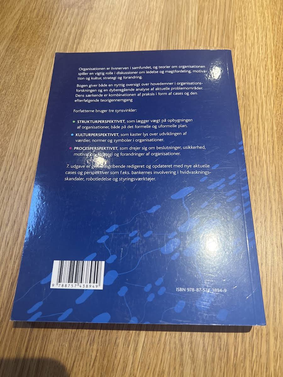 "Organisationsteori" fra 2019 af Egil Fivelsdal og Jørgen Frode Bakka tilbyder en grundig introduktion til centrale emner inden for organisationsforskning. Bogen undersøger, hvordan organisationens struktur, kultur og processer interagerer, og illustrerer teorierne gennem konkrete cases, som sætter fokus på både individet og organisationens samlede opbygning. Med udgangspunkt i cases fra den praktiske verden kombineres teoretiske perspektiver med virkelighedsnære eksempler, der belyser ledelse, strategi og forandringsprocesser. Denne opdaterede udgave giver læseren et solidt fundament for at forstå de dynamiske processer, der spiller en afgørende rolle i nutidens organisationer.