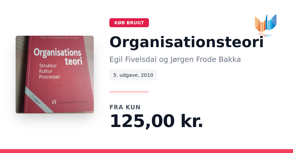 Organisationsteori: Struktur, Kultur, Processer af Jørgen Frode Bakka (2010) giver et systematisk overblik over de teorier og begreber, der former måden, vi forstår og organiserer arbejde på i både private og offentlige organisationer. Bogen henvender sig til studerende og ledere, der ønsker at kombinere teoretisk indsigt med konkrete eksempler fra praksis. Ud fra tre analytiske vinkler - strukturperspektivet, kulturperspektivet og procesperspektivet - belyses organisationers opbygning, deres værdier og symbolske univers samt de dynamikker, der knytter sig til beslutninger, motivation og forandring. Strukturperspektivet kortlægger både formelle roller og informelle netværk. Kulturperspektivet viser, hvordan normer og historier skaber sammenhængskraft. Procesperspektivet sætter fokus på strategiske valg, usikkerhedshåndtering og implementering af nye initiativer. I bogen præsenteres en række illustrative cases fra danske organisationer: Gamle Carlsberg, Falcks Redningskorps, Coloplast, IKEA, IRMA, Oticon, Amager Hospital, Hørsholm Kommune og andre. Hver case udfolder, hvordan teorierne anvendes i praksis, og skaber en direkte kobling mellem akademisk forskning og daglig ledelse. Organisationsteori er dermed både en grundbog og et inspirationskatalog for alle, der ønsker at forstå og udvikle organisationer.