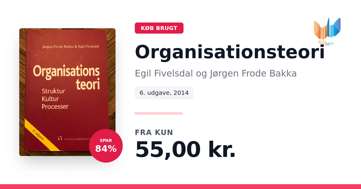 Organisationsteori: Struktur, kultur, processer af Jørgen Frode Bakka og Egil Fivelsdal giver en alsidig introduktion til, hvordan organisationer opbygges og udvikles. Bogen kombinerer en grundlæggende oversigt med dybdegående analyser af centrale områder inden for organisationsforskningen, og læseren præsenteres for, hvordan struktur, kultur og processer spiller sammen og påvirker ledelse, beslutninger og forandring. Forfatterne benytter tre perspektiver for at belyse organisationens virkelighed: strukturperspektivet, som fokuserer på både formelle og uformelle elementer; kulturperspektivet, der undersøger, hvordan værdier, normer og symboler skaber identitet; og procesperspektivet, som ser nærmere på beslutningsprocesser, usikkerhed og strategiske udfordringer. Med skarpe analyser og konkrete cases illustrerer bogen, hvordan teori og praksis mødes i organisationsverdenen. Denne sjette udgave videreudvikler og opdaterer de teoretiske indsigter, så den både tjener som et praktisk redskab og som en inspirerende refleksion over organisationers rolle i samfundet.