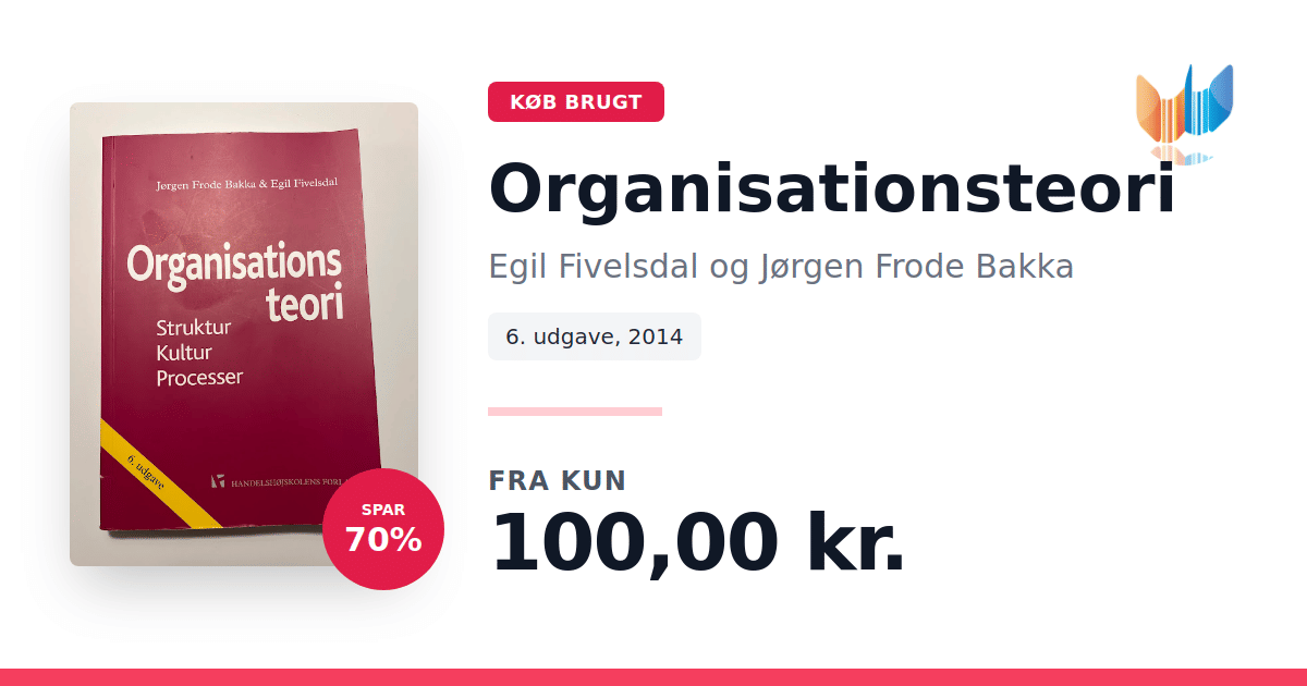 Organisationsteori: Struktur, kultur, processer af Jørgen Frode Bakka og Egil Fivelsdal giver en alsidig introduktion til, hvordan organisationer opbygges og udvikles. Bogen kombinerer en grundlæggende oversigt med dybdegående analyser af centrale områder inden for organisationsforskningen, og læseren præsenteres for, hvordan struktur, kultur og processer spiller sammen og påvirker ledelse, beslutninger og forandring. Forfatterne benytter tre perspektiver for at belyse organisationens virkelighed: strukturperspektivet, som fokuserer på både formelle og uformelle elementer; kulturperspektivet, der undersøger, hvordan værdier, normer og symboler skaber identitet; og procesperspektivet, som ser nærmere på beslutningsprocesser, usikkerhed og strategiske udfordringer. Med skarpe analyser og konkrete cases illustrerer bogen, hvordan teori og praksis mødes i organisationsverdenen. Denne sjette udgave videreudvikler og opdaterer de teoretiske indsigter, så den både tjener som et praktisk redskab og som en inspirerende refleksion over organisationers rolle i samfundet.