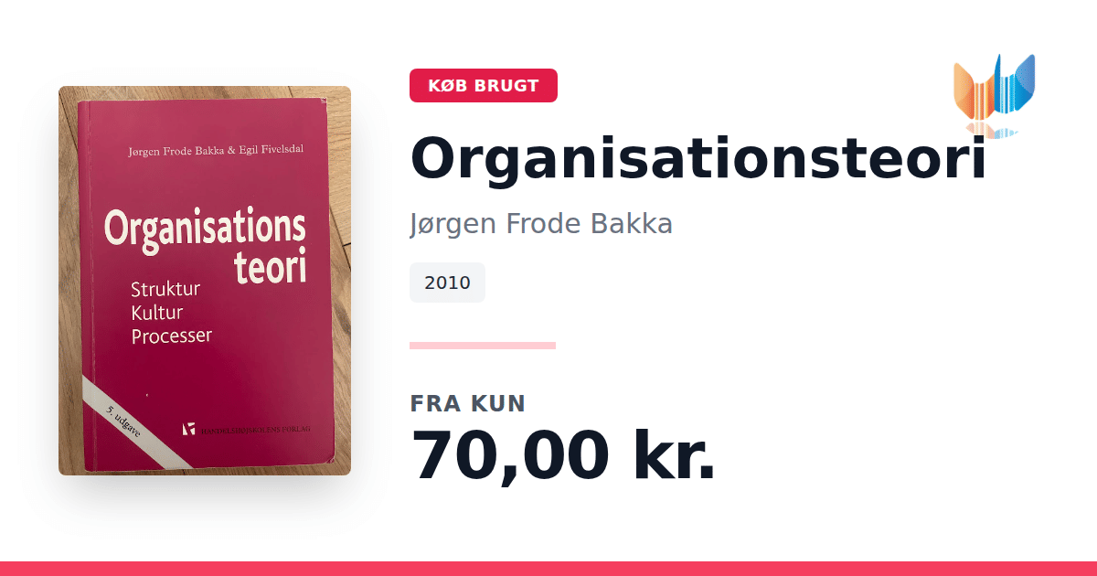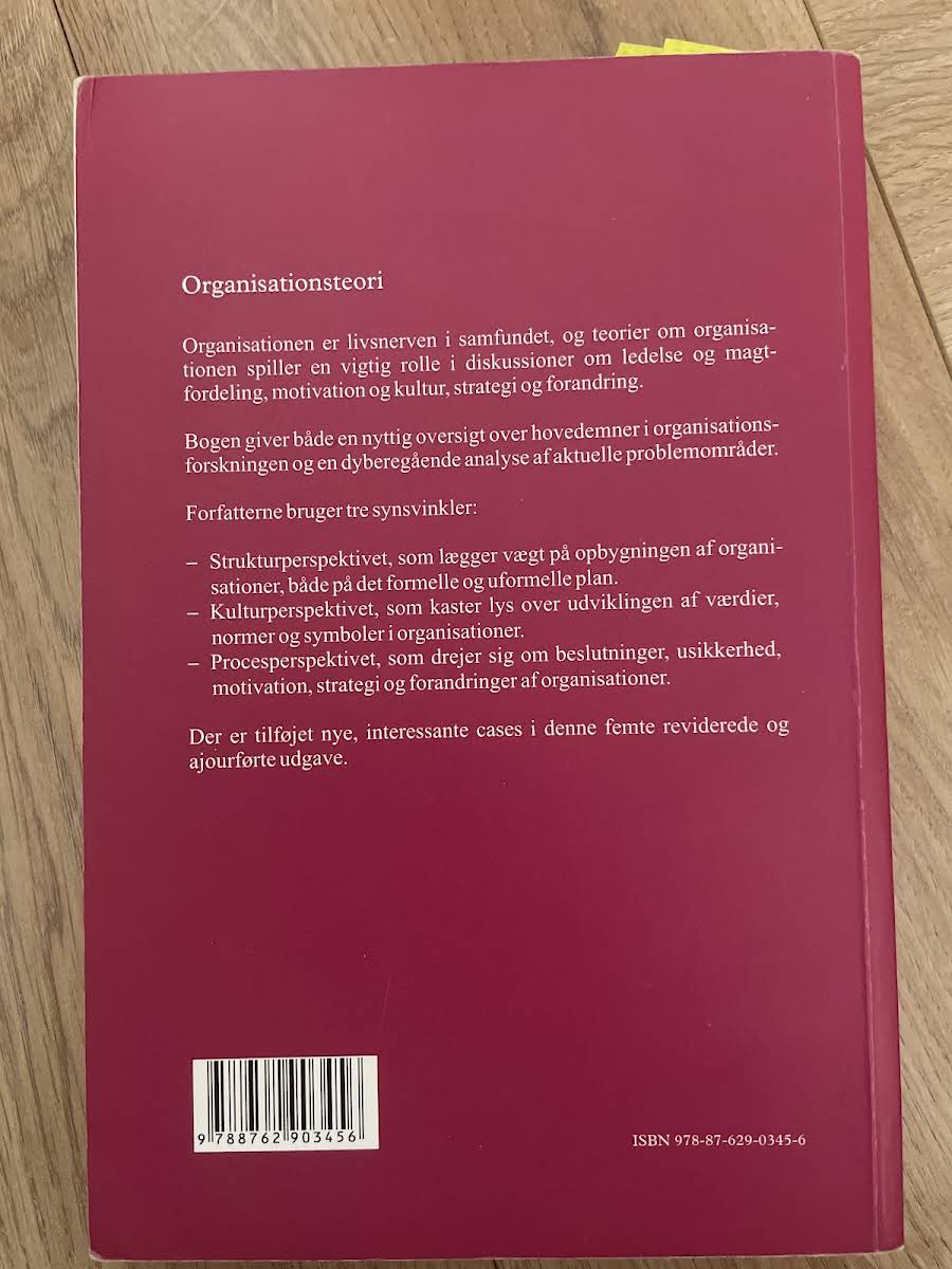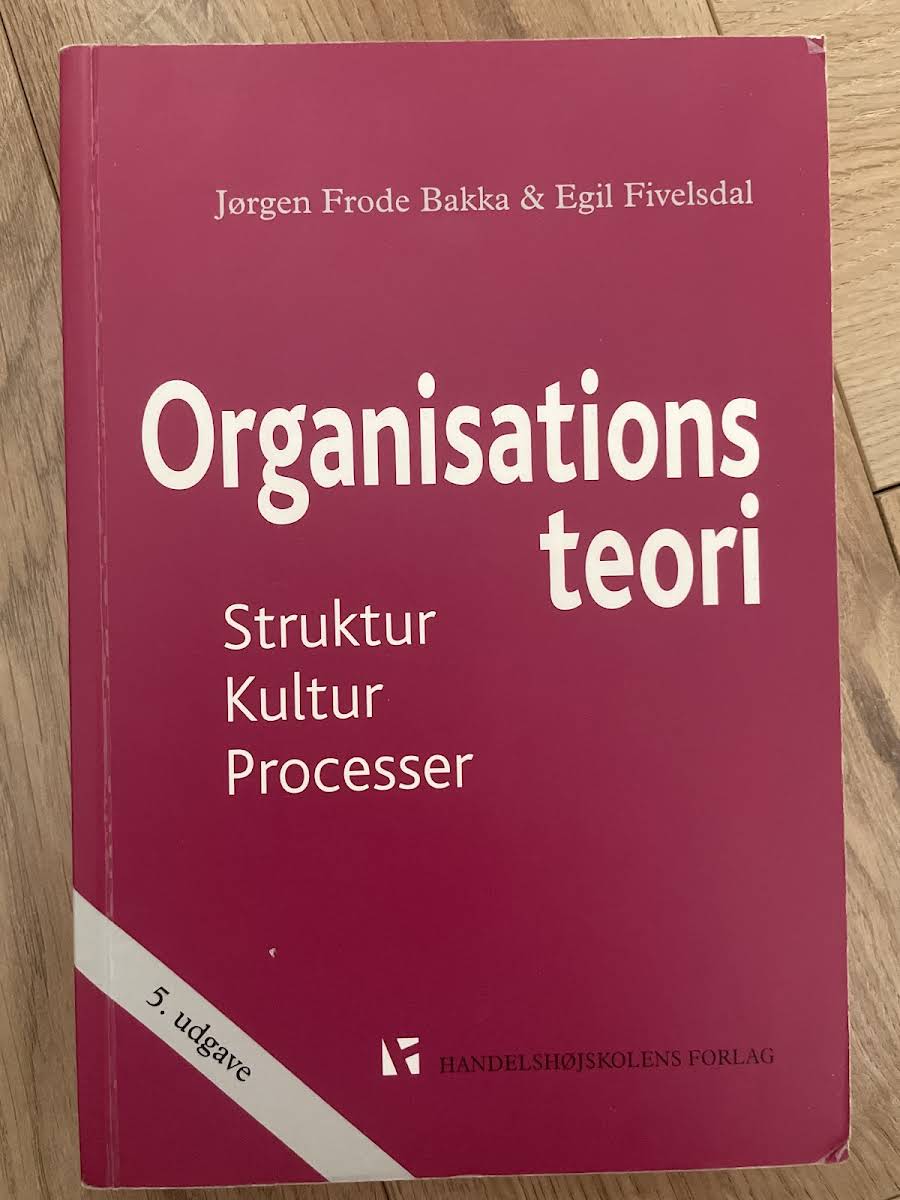 Organisationsteori: Struktur, Kultur, Processer af Jørgen Frode Bakka (2010) giver et systematisk overblik over de teorier og begreber, der former måden, vi forstår og organiserer arbejde på i både private og offentlige organisationer. Bogen henvender sig til studerende og ledere, der ønsker at kombinere teoretisk indsigt med konkrete eksempler fra praksis. Ud fra tre analytiske vinkler - strukturperspektivet, kulturperspektivet og procesperspektivet - belyses organisationers opbygning, deres værdier og symbolske univers samt de dynamikker, der knytter sig til beslutninger, motivation og forandring. Strukturperspektivet kortlægger både formelle roller og informelle netværk. Kulturperspektivet viser, hvordan normer og historier skaber sammenhængskraft. Procesperspektivet sætter fokus på strategiske valg, usikkerhedshåndtering og implementering af nye initiativer. I bogen præsenteres en række illustrative cases fra danske organisationer: Gamle Carlsberg, Falcks Redningskorps, Coloplast, IKEA, IRMA, Oticon, Amager Hospital, Hørsholm Kommune og andre. Hver case udfolder, hvordan teorierne anvendes i praksis, og skaber en direkte kobling mellem akademisk forskning og daglig ledelse. Organisationsteori er dermed både en grundbog og et inspirationskatalog for alle, der ønsker at forstå og udvikle organisationer.